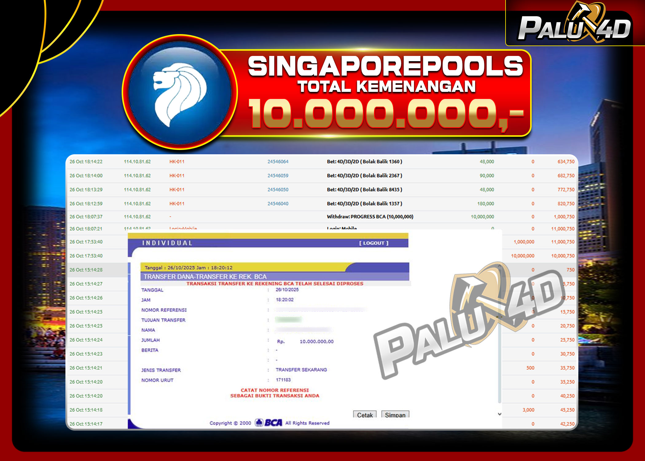 PALU4D – Menang Togel SINGAPOREPOOLS Rp.10.000.000.,- LUNAS PALU4D – Selamat bagi pemenang yang mendapatkan jackpot hari ini 26 OKTOBER 2025 di game […]