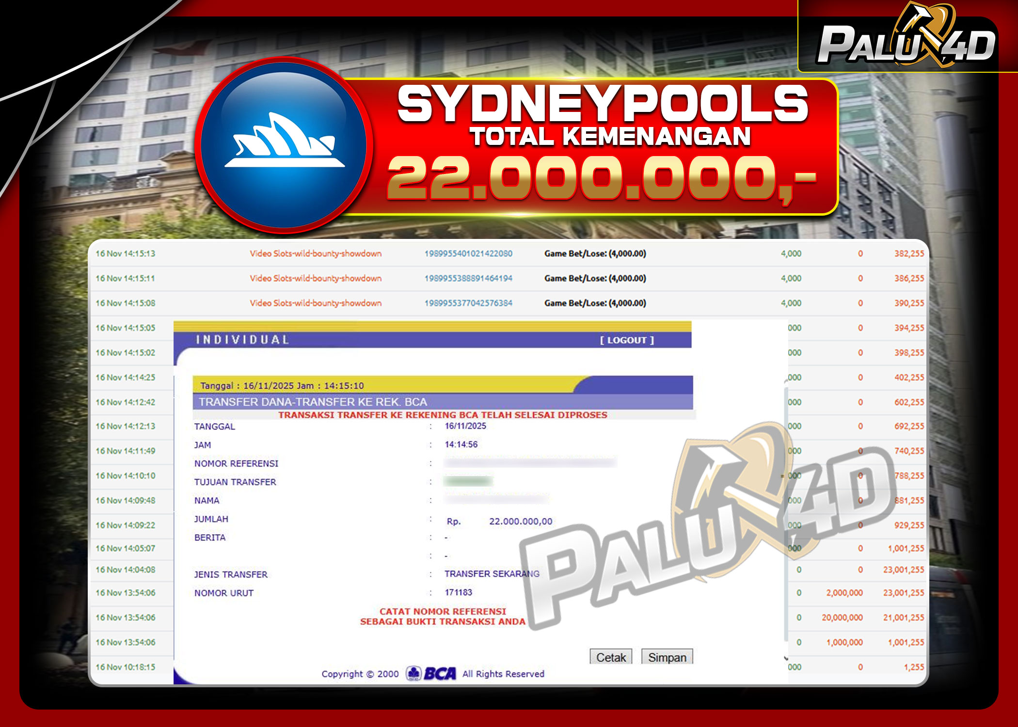 PALU4D – Menang Togel SYDNEYPOOLS Rp.22.000.000.,- LUNAS
