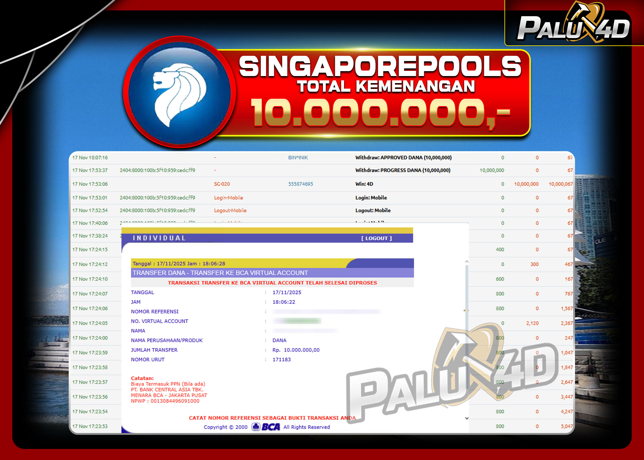 PALU4D – Menang Togel SINGAPOREPOOLS Rp.10.000.000.,- LUNAS