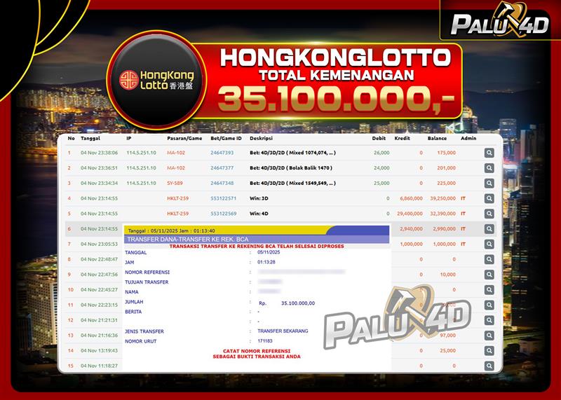 PALU4D – Menang Togel HONGKONGLOTTO Rp.31.100.000.,- LUNAS