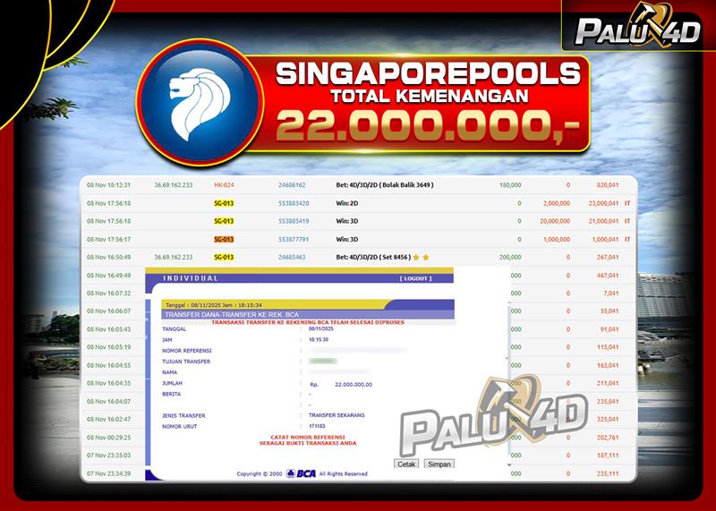 PALU4D – Menang Togel SINGAPOREPOOLS Rp.22.000.000.,- LUNAS