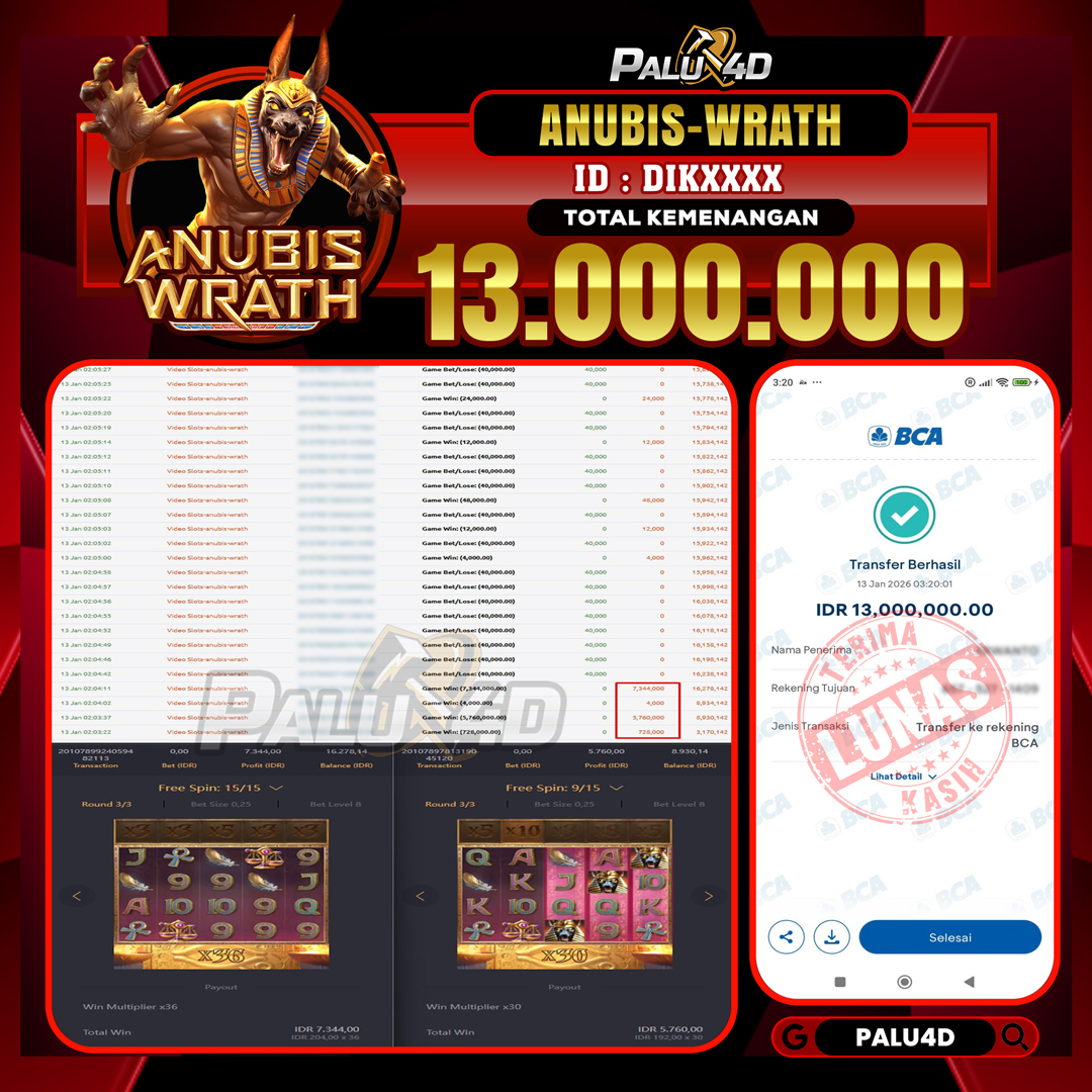 PALU4D – Menang Slot ANUBIS WRATH Rp.13.000.000.,- LUNAS