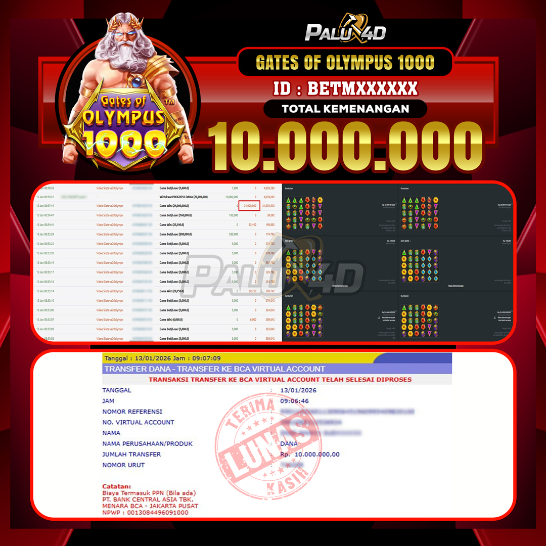 PALU4D – Menang Slot GATES OF OLYMPUS Rp.10.000.000.,- LUNAS PALU4D – Selamat bagi pemenang yang mendapatkan jackpot hari ini 13 JANUARI 2026 […]