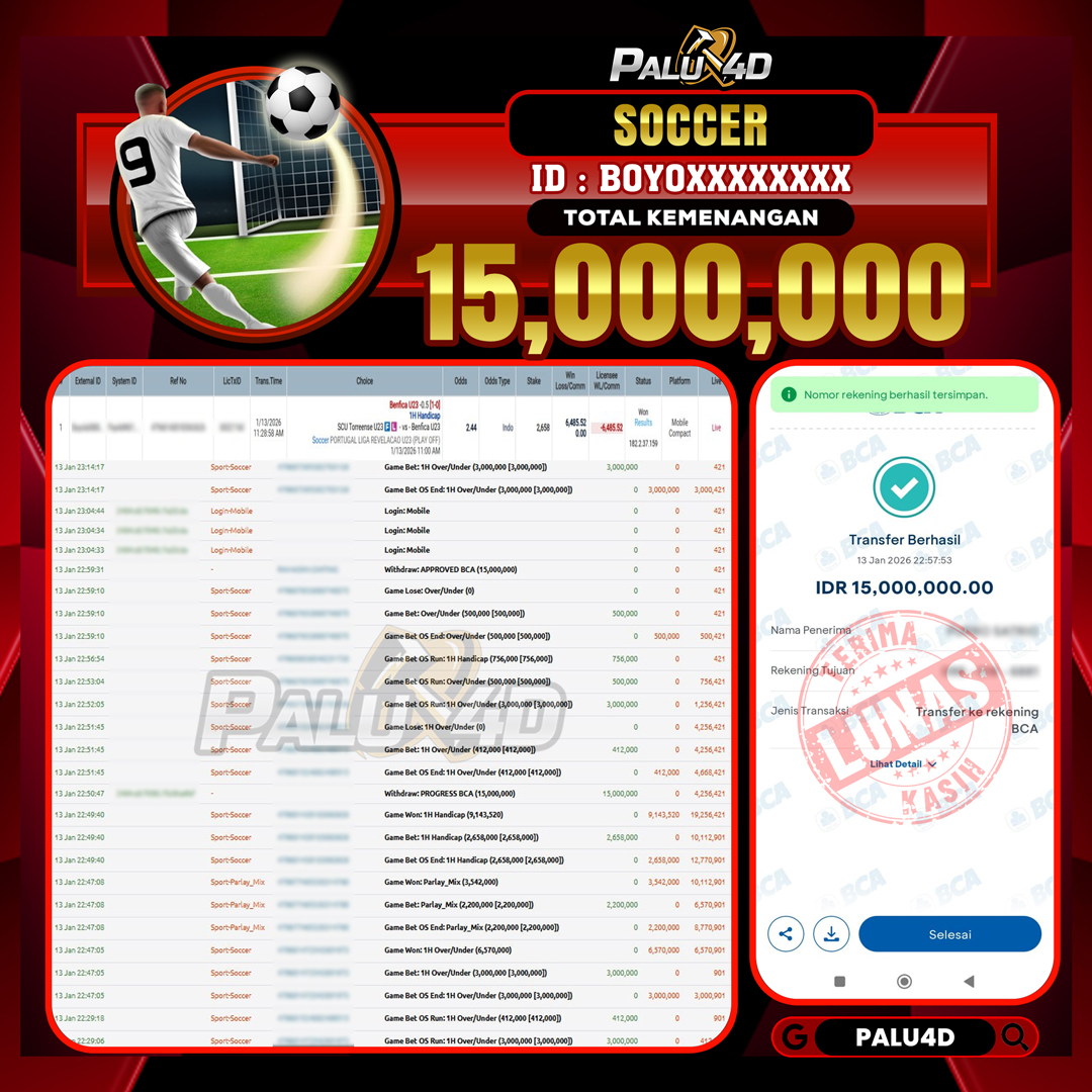 PALU4D – Menang SPORTBOOKS TARUHAN BOLA Rp.15.000.000.,- LUNAS