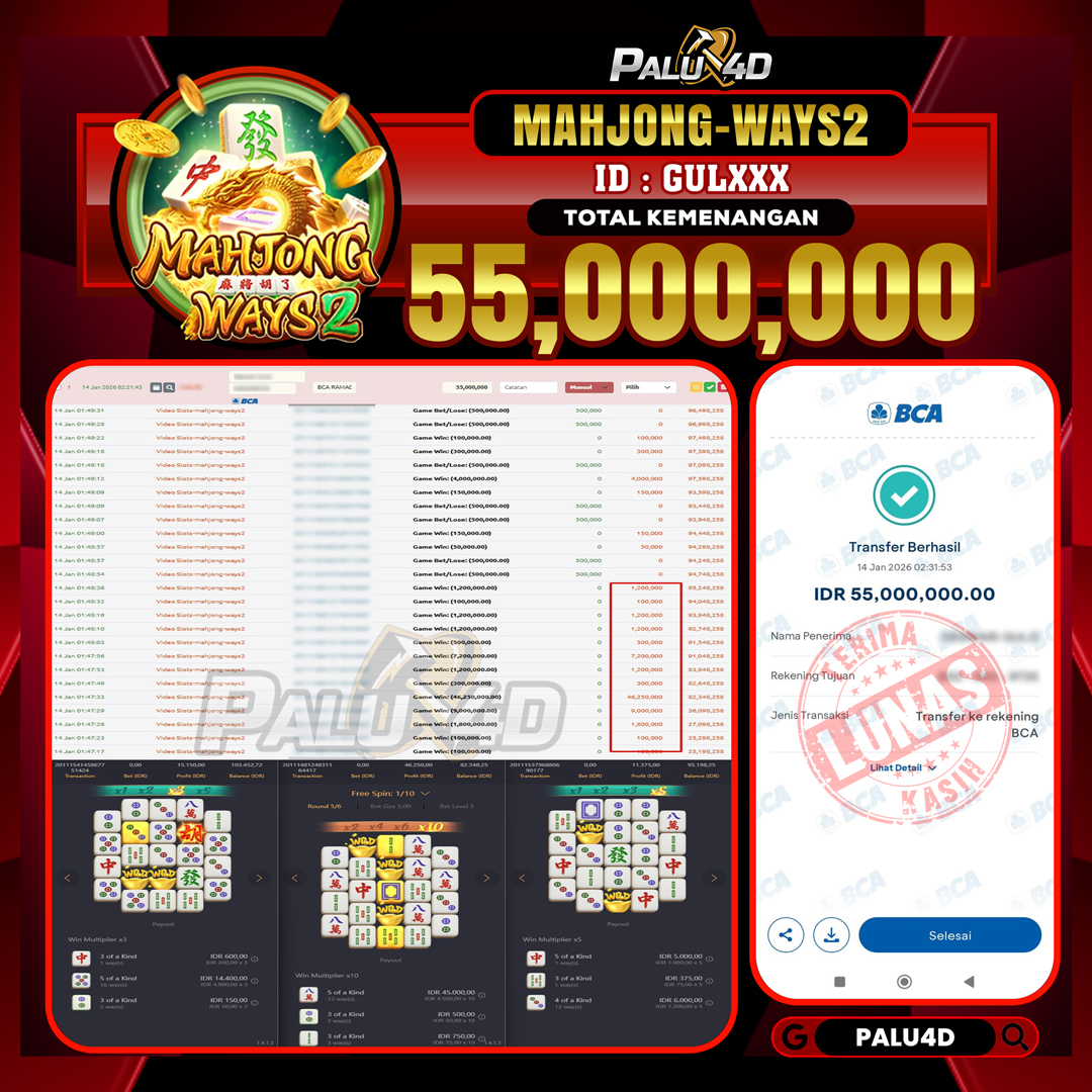 PALU4D – Menang Slot MAHJONG WAYS   Rp.55.000.000.,- LUNAS