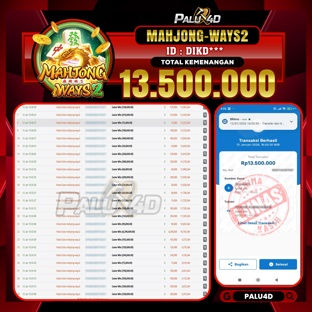 PALU4D – Menang Slot MAHJONG WAYS 2  Rp.13.500.000.,- LUNAS