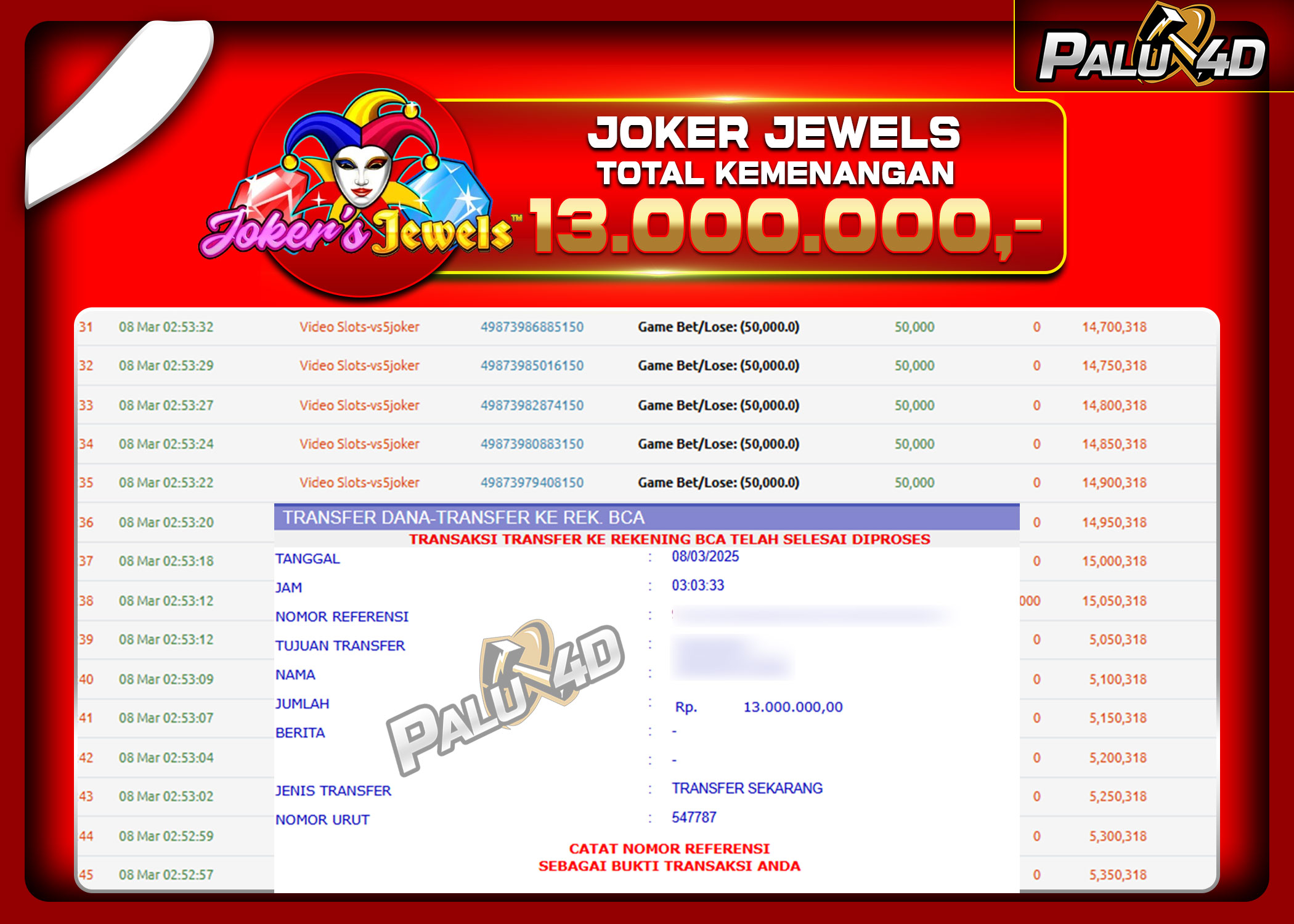 08/03/2025SLOT PALU4D – Menang Slot JOKER JEWELS Rp.13.000.000.,- LUNAS PALU4D – Menang Slot JOKER JEWELS Rp.13.000.000.,- LUNAS PALU4D – Selamat bagi pemenang yang mendapatkan jackpot hari ini 8 MARET 2025 di […]