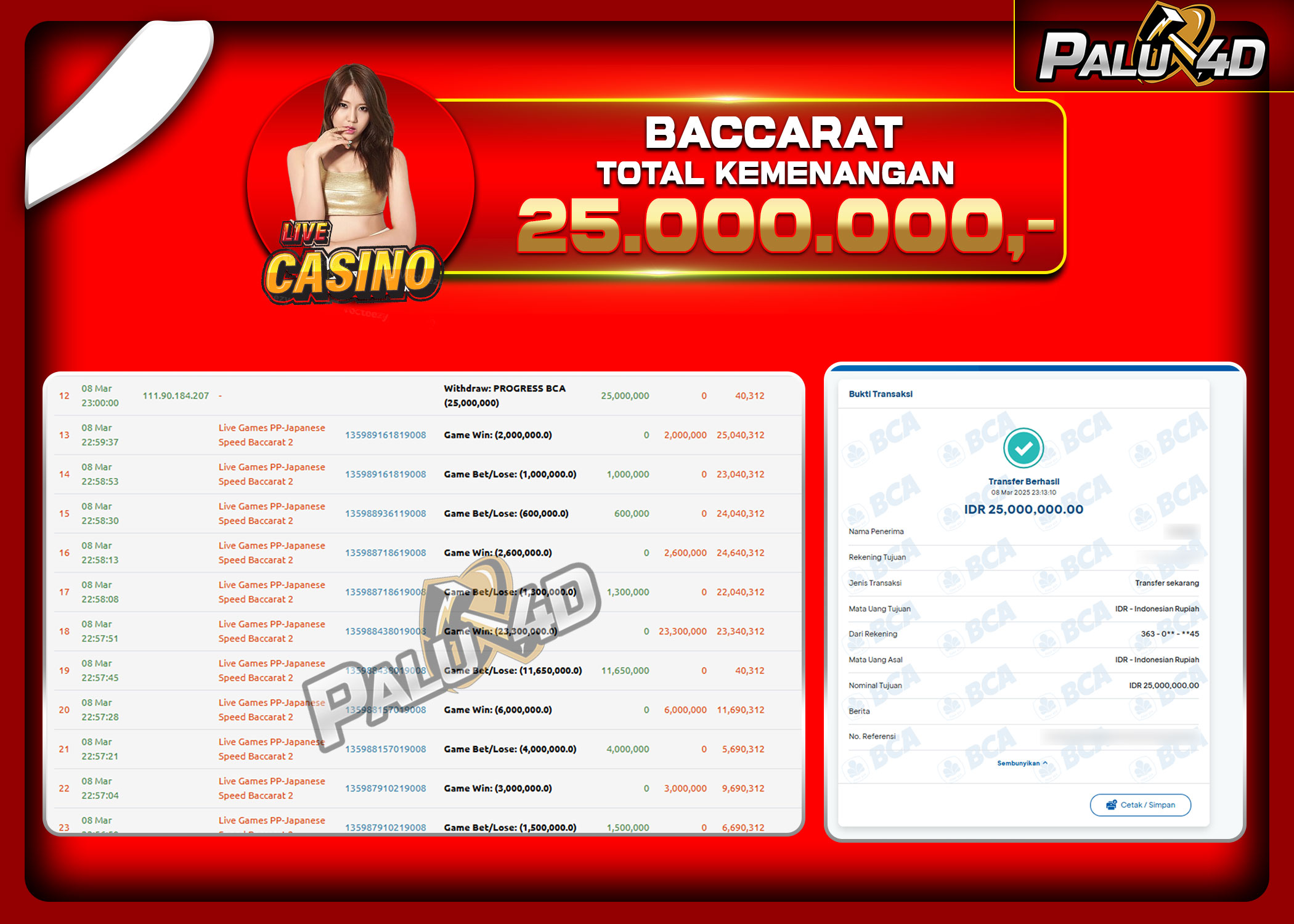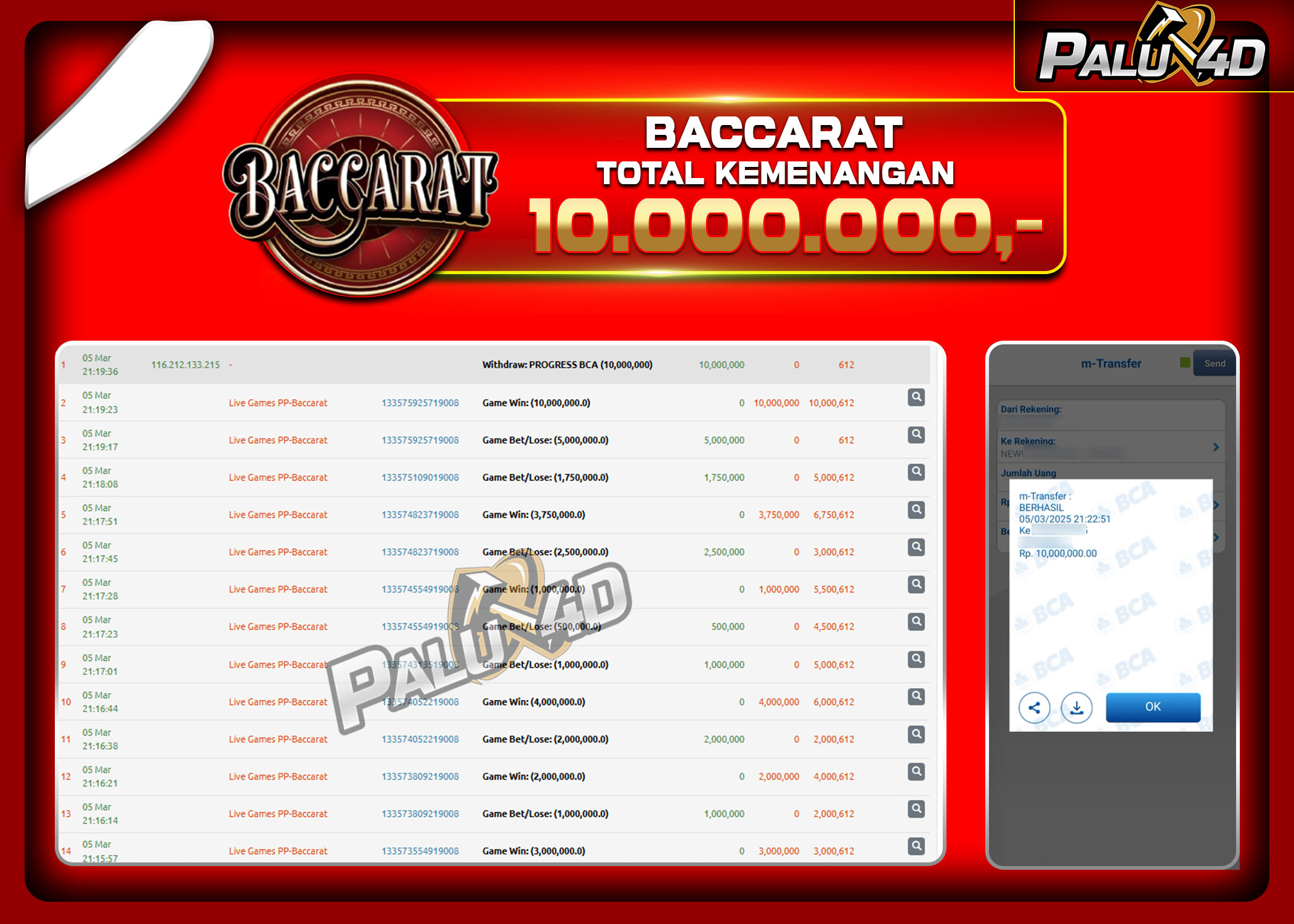 11/03/202511/03/2025LIVE CASINO PALU4D – Menang Live Games BACCARAT Rp.40.006.500.,- LUNAS PALU4D – Menang Live Games BACCARAT Rp.40.006.500.,- LUNAS PALU4D – Selamat bagi pemenang yang mendapatkan jackpot hari ini 11 Maret 2025 di […]