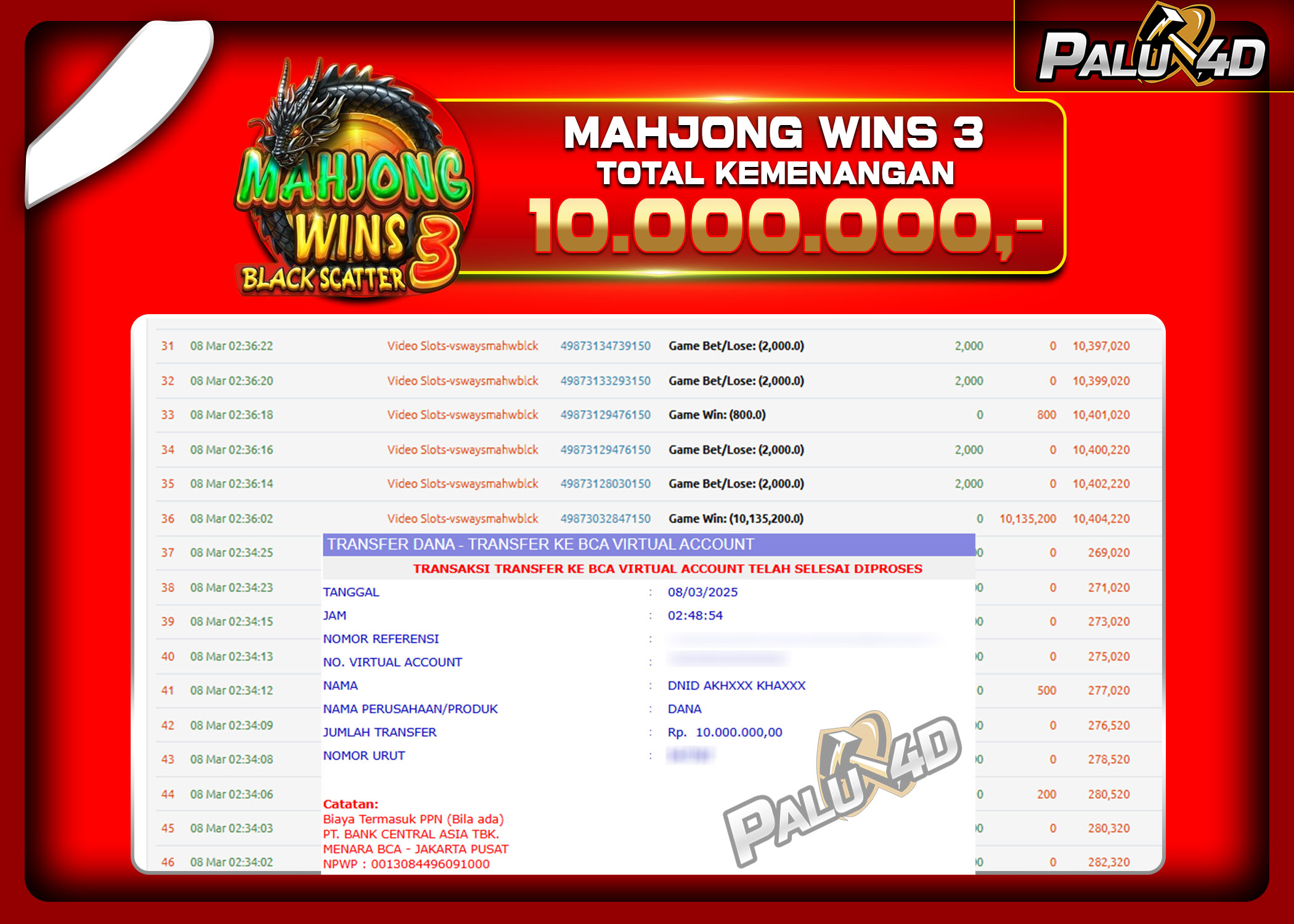 08/03/2025SLOT PALU4D – Menang Slot MAHJONG WINS 3 Rp.10.000.000.,- LUNAS PALU4D – Menang Slot MAHJONG WINS 3 Rp.10.000.000.,- LUNAS PALU4D – Selamat bagi pemenang yang mendapatkan jackpot hari ini 8 MARET 2024 […]