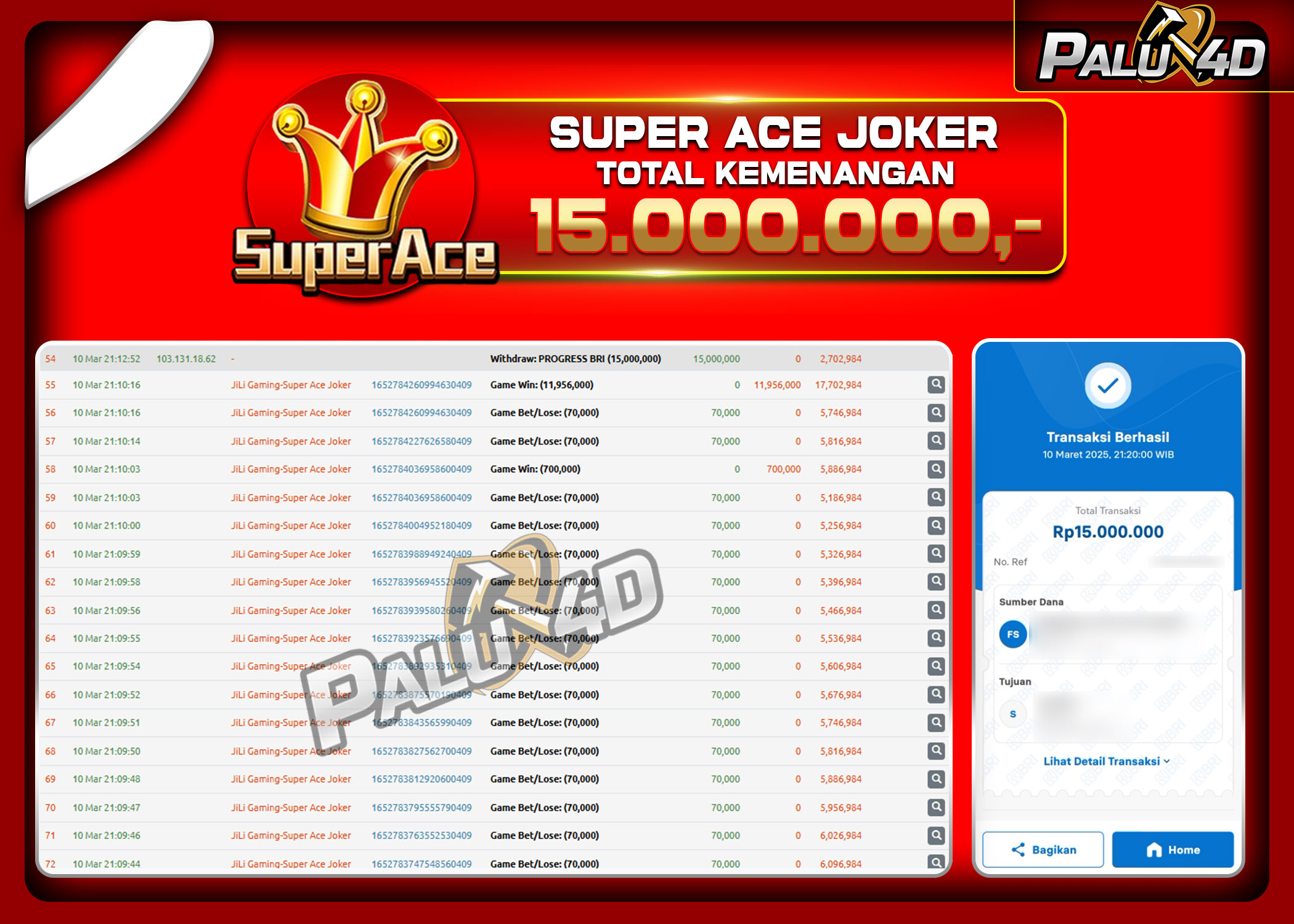 11/03/202511/03/2025SLOT PALU4D – Menang SUPER ACE JOKER Rp.15.000.000.,- LUNAS PALU4D – Menang SUPER ACE JOKER Rp.15.000.000.,- LUNAS PALU4D – Selamat bagi pemenang yang mendapatkan jackpot hari ini 11 Maret 2025 di […]