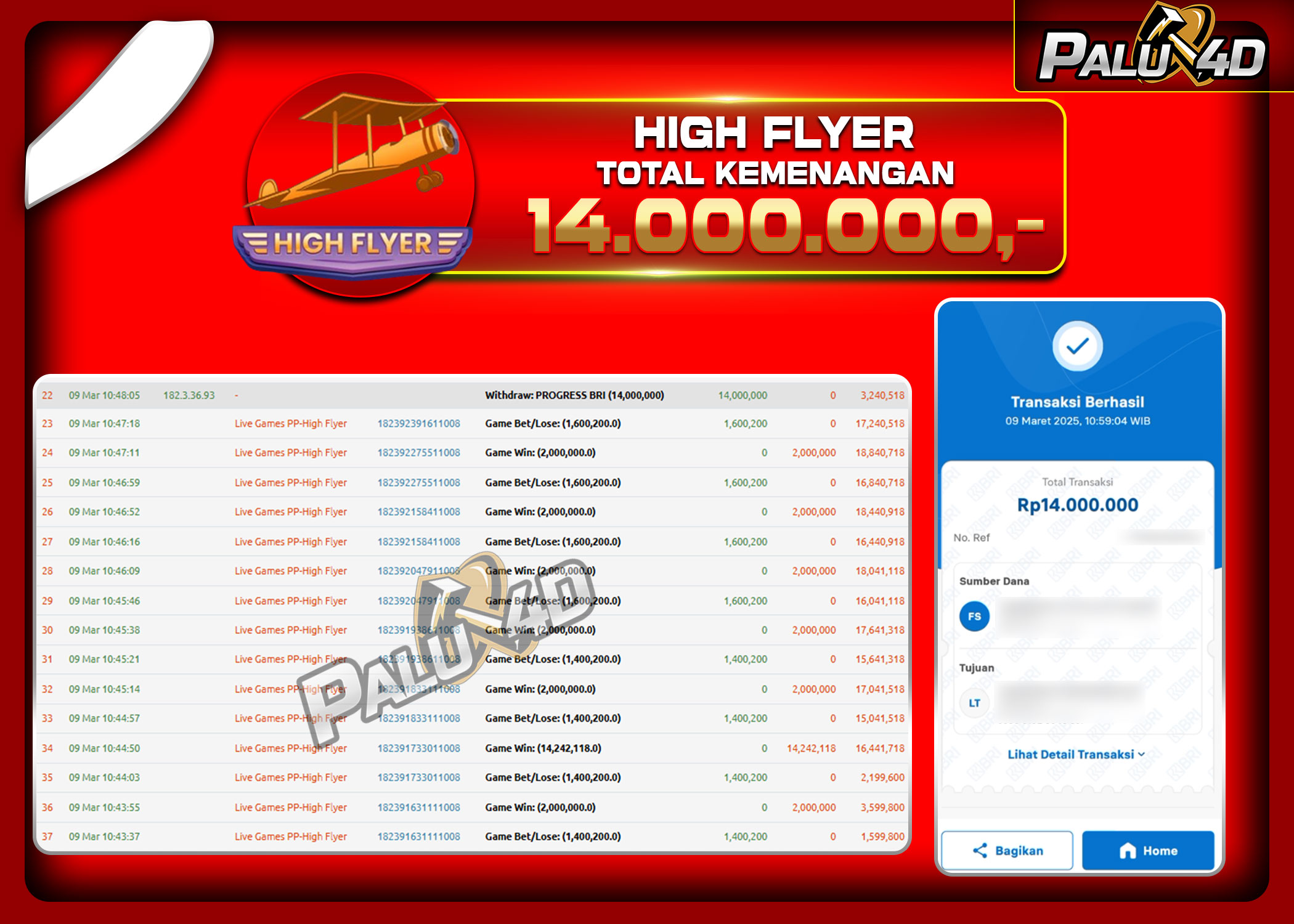 11/03/202511/03/2025LIVE CASINO PALU4D – Menang LIVE CASINO HIGH FLYER Rp.14.000.000.,- LUNAS PALU4D – Menang LIVE CASINO HIGH FLYER Rp.14.000.000.,- LUNAS PALU4D – Selamat bagi pemenang yang mendapatkan jackpot hari ini 11 Maret 2025 […]