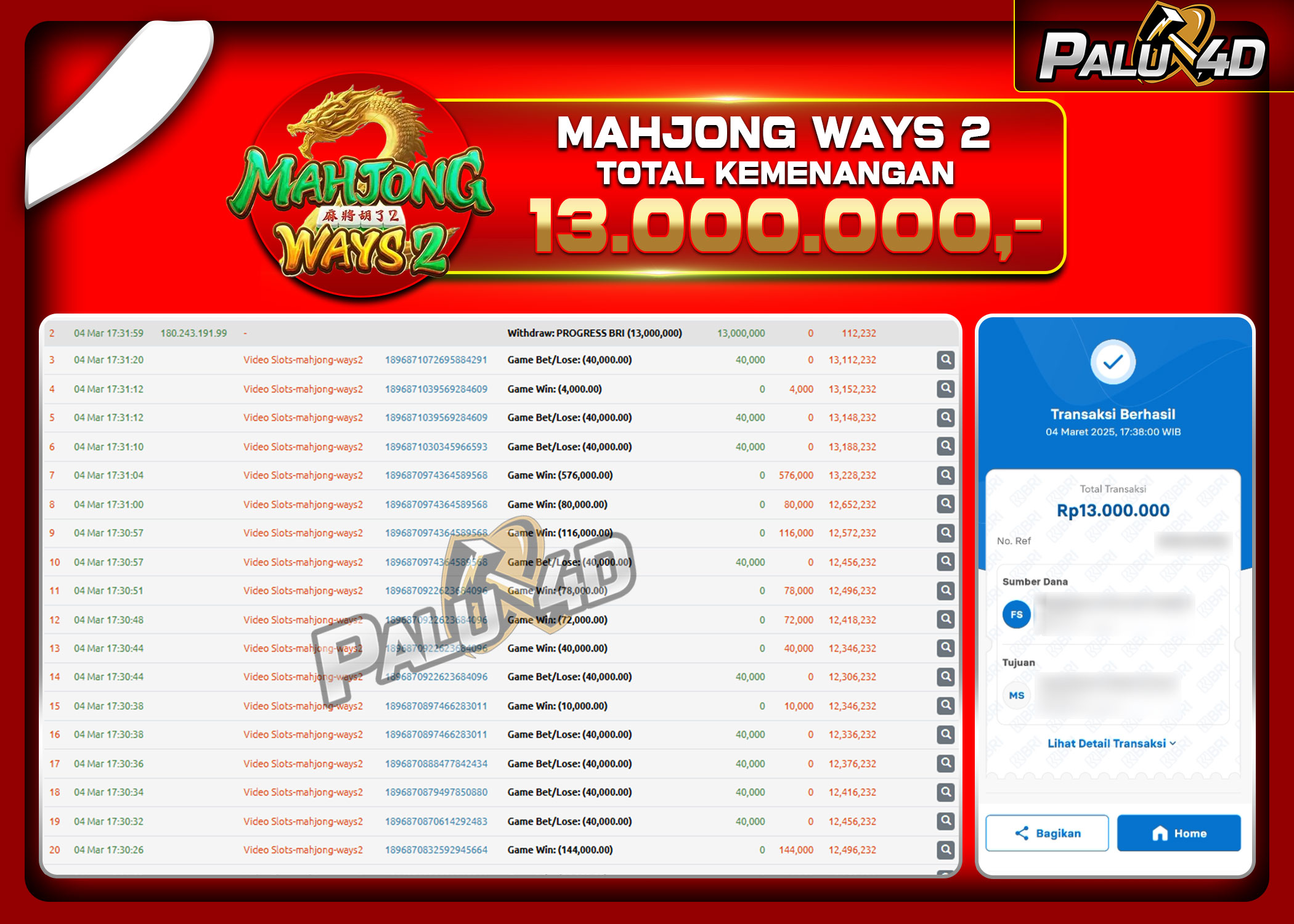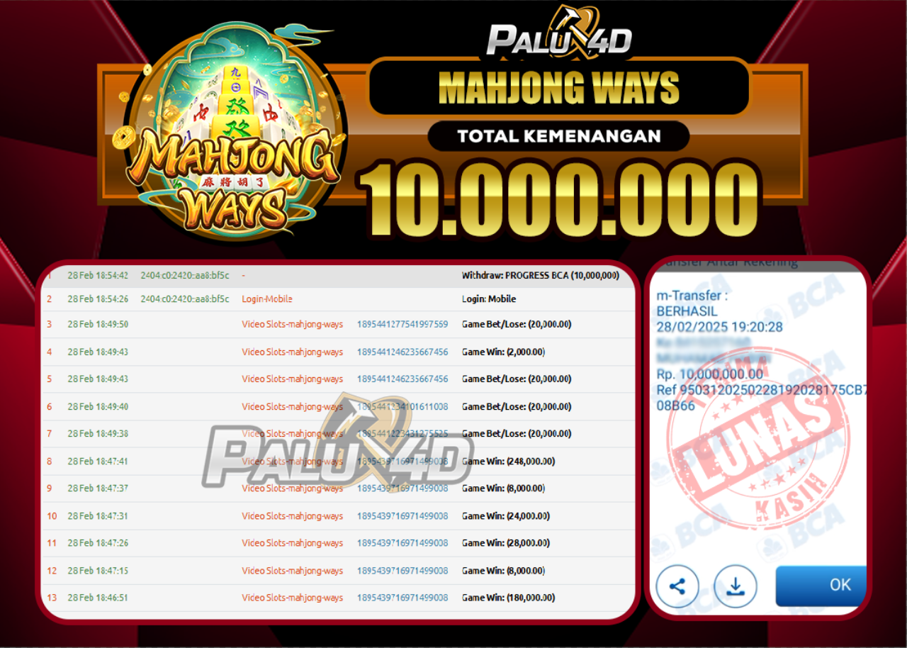 05/03/2025SLOT PALU4D – Menang Slot MAHJONG WAYS Rp.13.000.000.,- LUNAS PALU4D – Menang Slot MAHJONG WAYS Rp.13.000.000.,- LUNAS PALU4D – Selamat bagi pemenang yang mendapatkan jackpot hari ini 5 Maret 2025 di […]