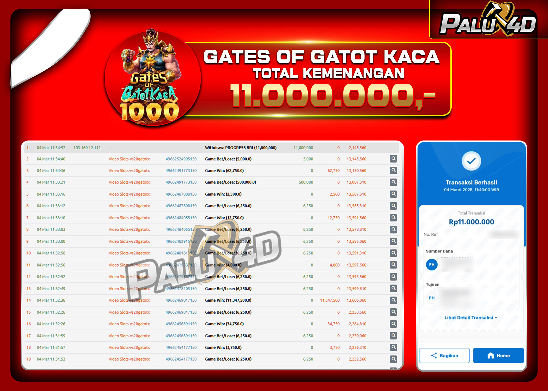 01/03/2025LIVE CASINO PALU4D – Menang LIVE CASINO MEGA ROULETTE Rp.11.000.000.,- LUNAS PALU4D – Menang LIVE CASINO MEGA ROULETTE Rp.11.000.000.,- LUNAS PALU4D – Selamat bagi pemenang yang mendapatkan jackpot hari ini 3 Maret 2025 […]