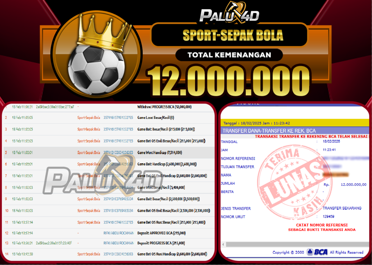 PALU4D – Menang SPORTBOOKS TARUHAN BOLA Rp.12.000.000.,- LUNAS PALU4D – Selamat bagi pemenang yang mendapatkan jackpot hari ini 18 February 2025 di […]