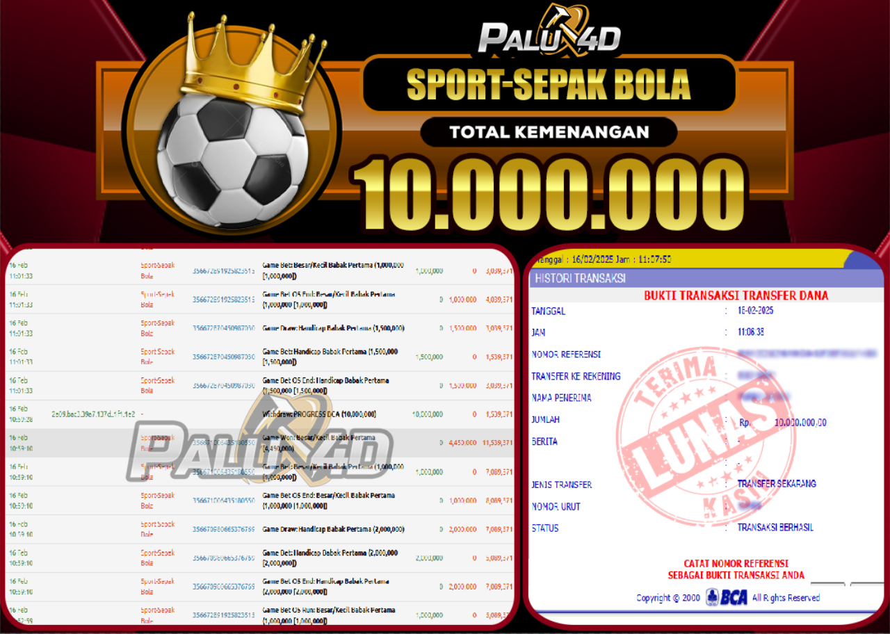 PALU4D – Menang SPORTBOOKS TARUHAN BOLA Rp.10.000.000.,- LUNAS PALU4D – Selamat bagi pemenang yang mendapatkan jackpot hari ini 16 February 2025 di […]