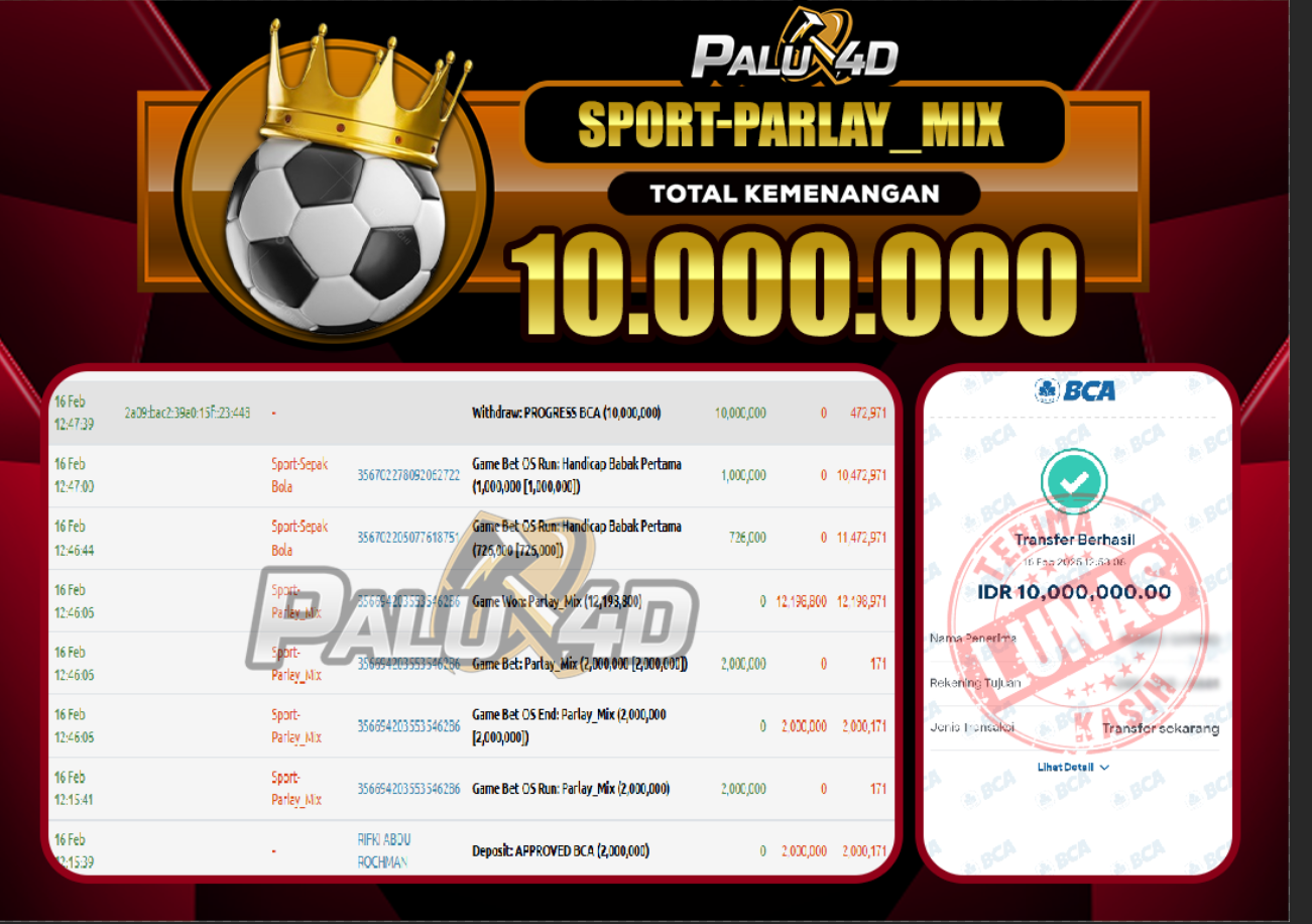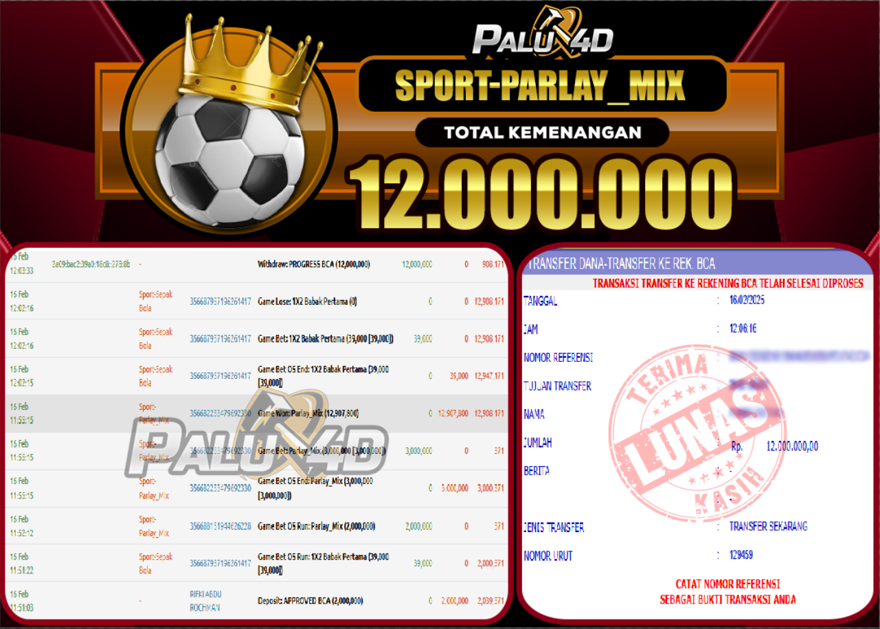 PALU4D – Menang SPORTBOOKS TARUHAN BOLA Rp.12.000.000.,- LUNAS PALU4D – Selamat bagi pemenang yang mendapatkan jackpot hari ini 16 February 2025 di […]