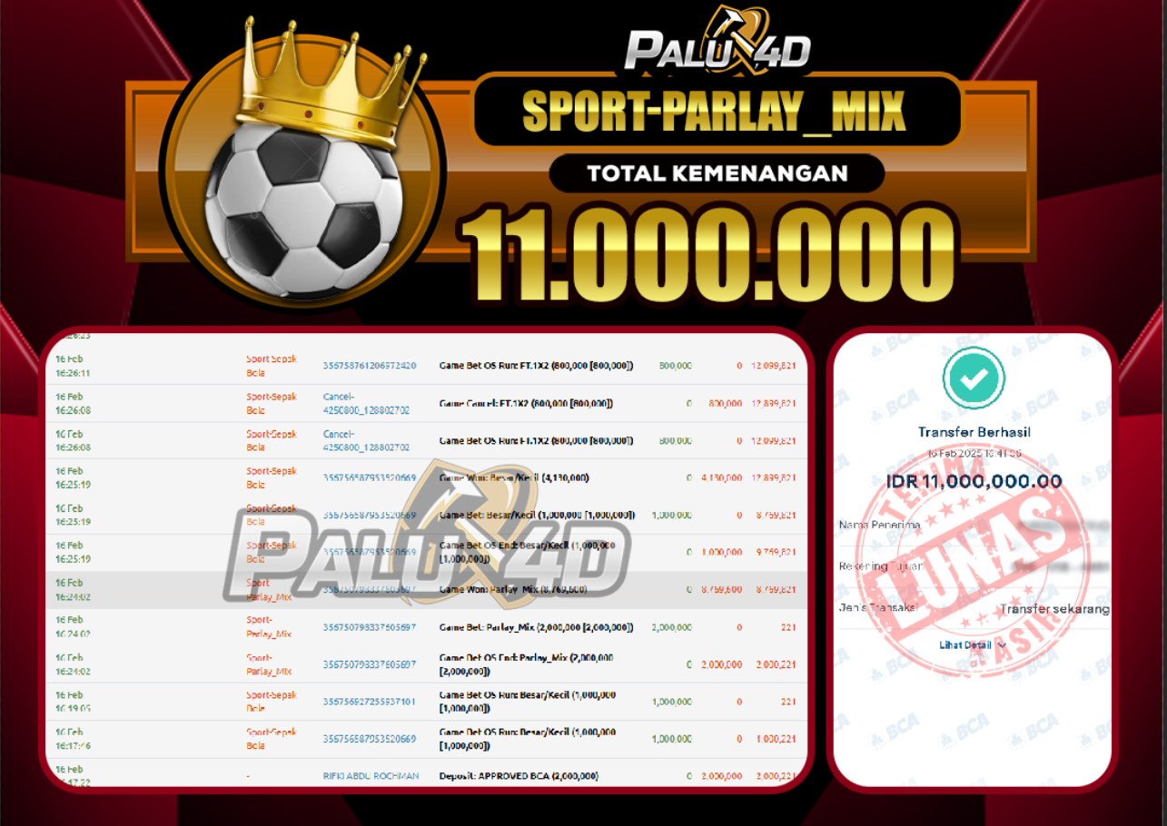 PALU4D – Menang SPORTBOOKS TARUHAN BOLA Rp.11.000.000.,- LUNAS PALU4D – Selamat bagi pemenang yang mendapatkan jackpot hari ini 16 February 2025 di […]