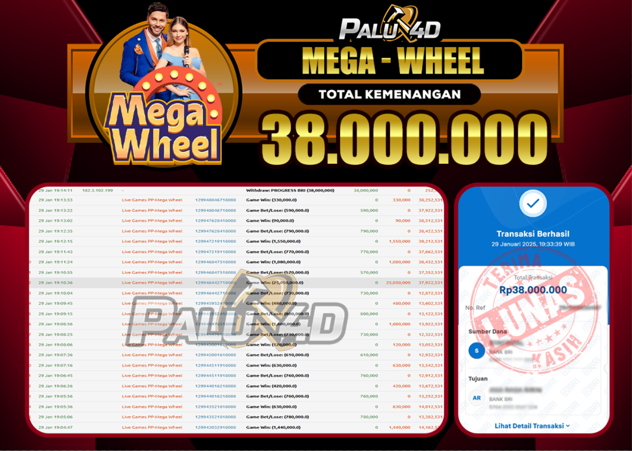PALU4D – Menang LIVE CASINO MEGA WHEEL   Rp.38.000.000.,- LUNAS