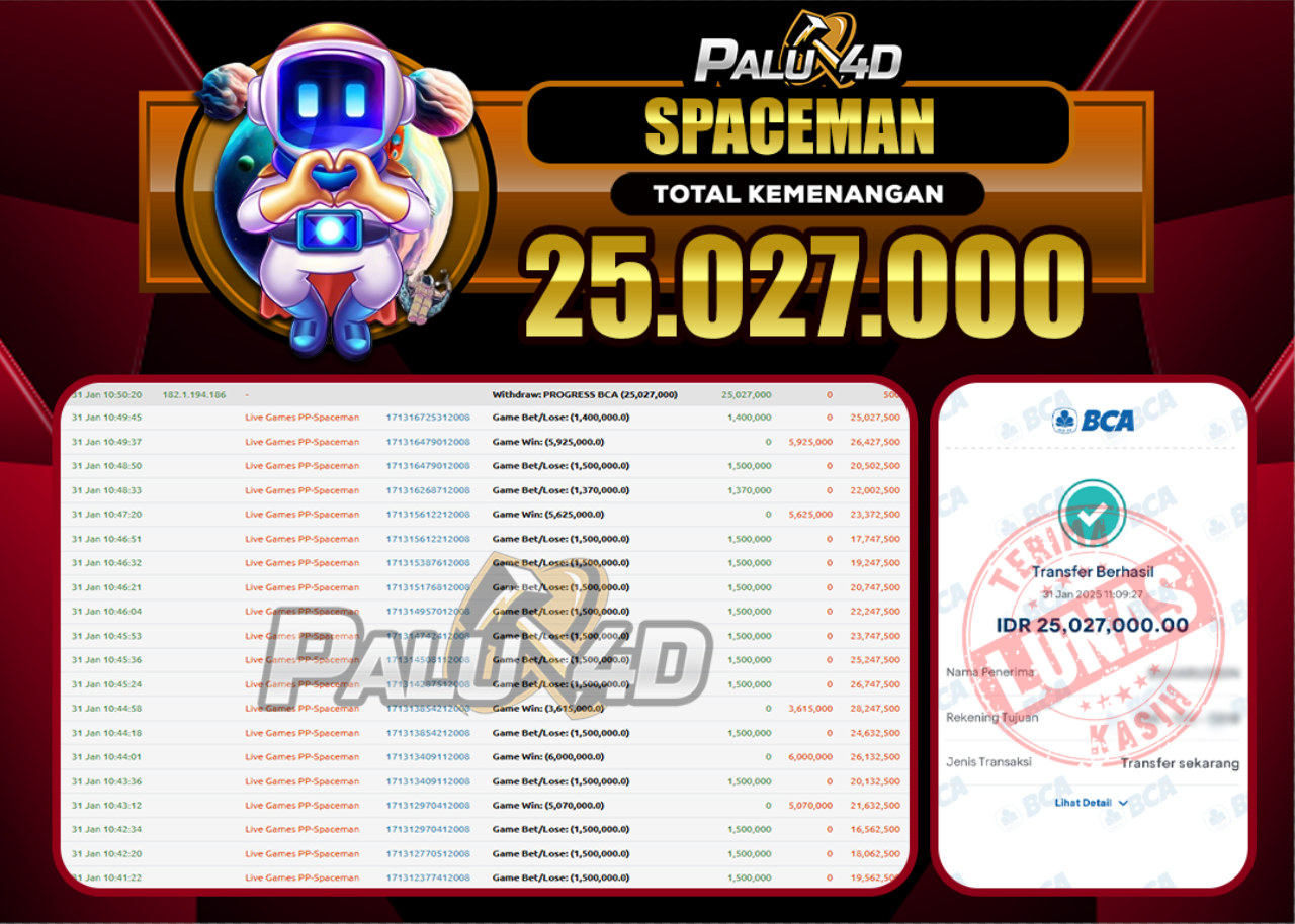 PALU4D – Menang LIVE CASINO SPACEMAN  Rp.25.027.000.,- LUNAS