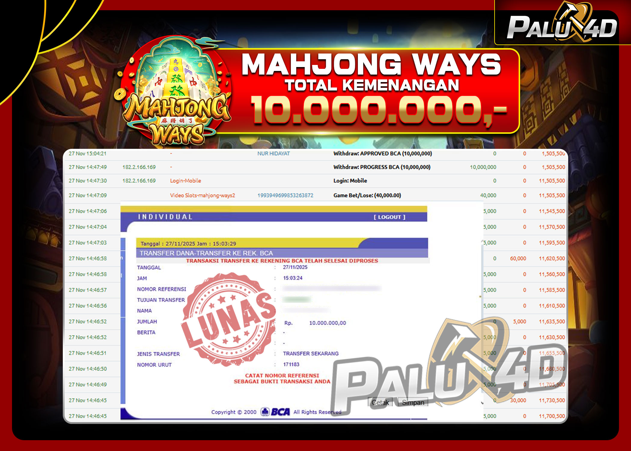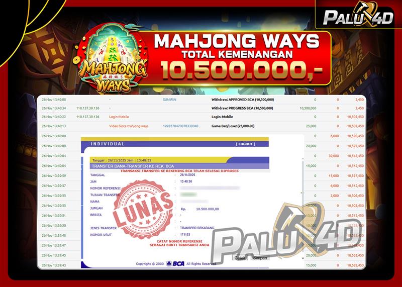 28/11/2025SLOT PALU4D – Menang Slot MAHJONG WAYS Rp.10.000.000.,- LUNAS PALU4D – Menang Slot MAHJONG WAYS Rp.10.000.000.,- LUNAS PALU4D – Selamat bagi pemenang yang mendapatkan jackpot hari ini 27 NOVEMBER 2025 di […]