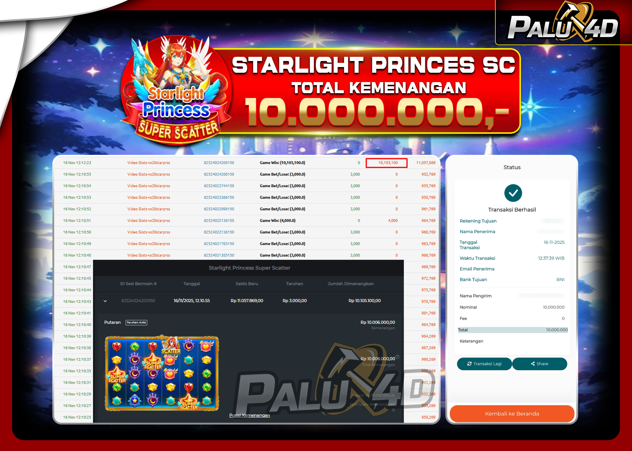 PALU4D – Menang Slot STARLIGHT PRINCESS SUPER SCATTER Rp.10.000.000.,- LUNAS