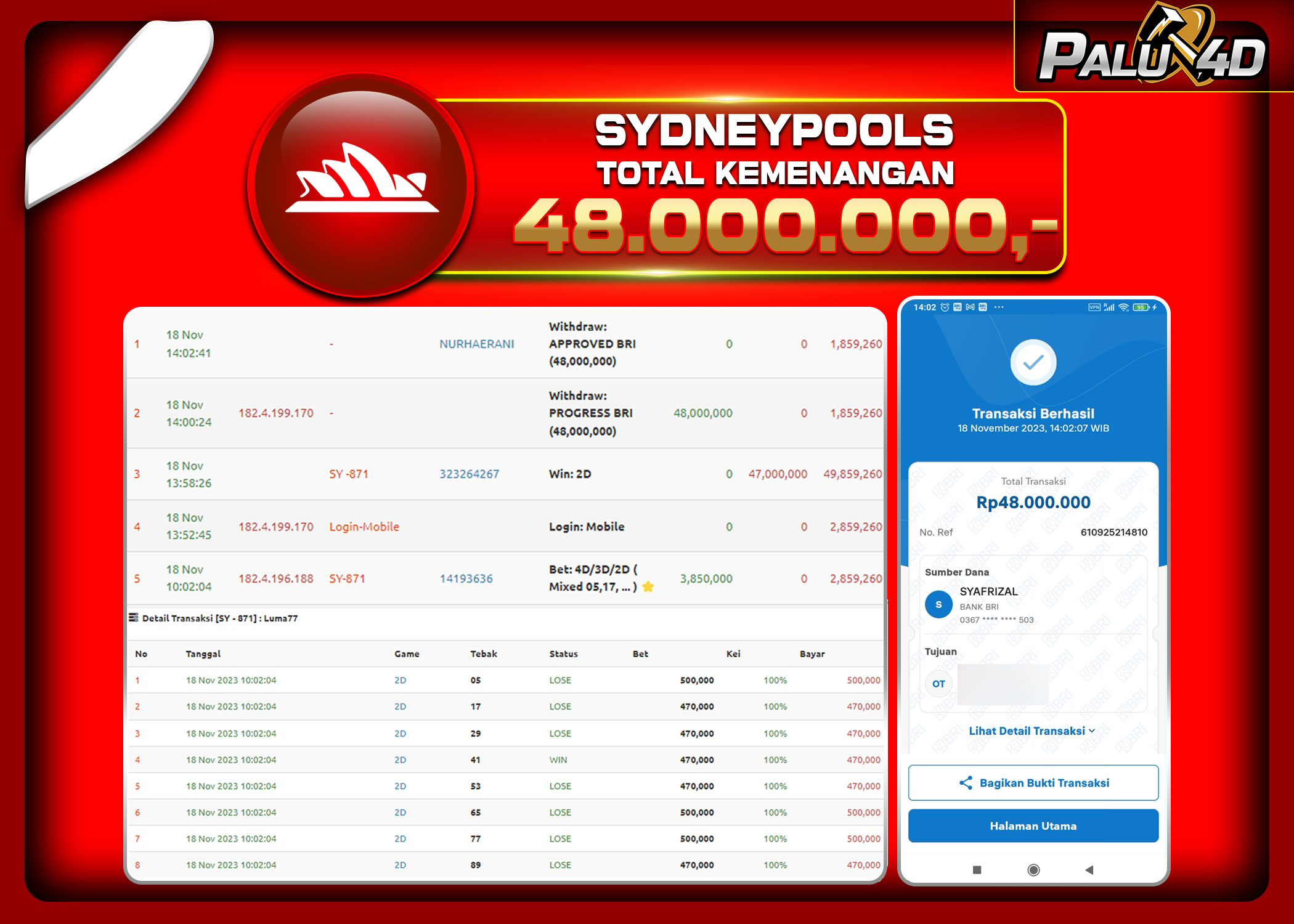 PALU4D – Menang Togel SYDNEYPOOLS Rp.48.000.000.,- LUNAS