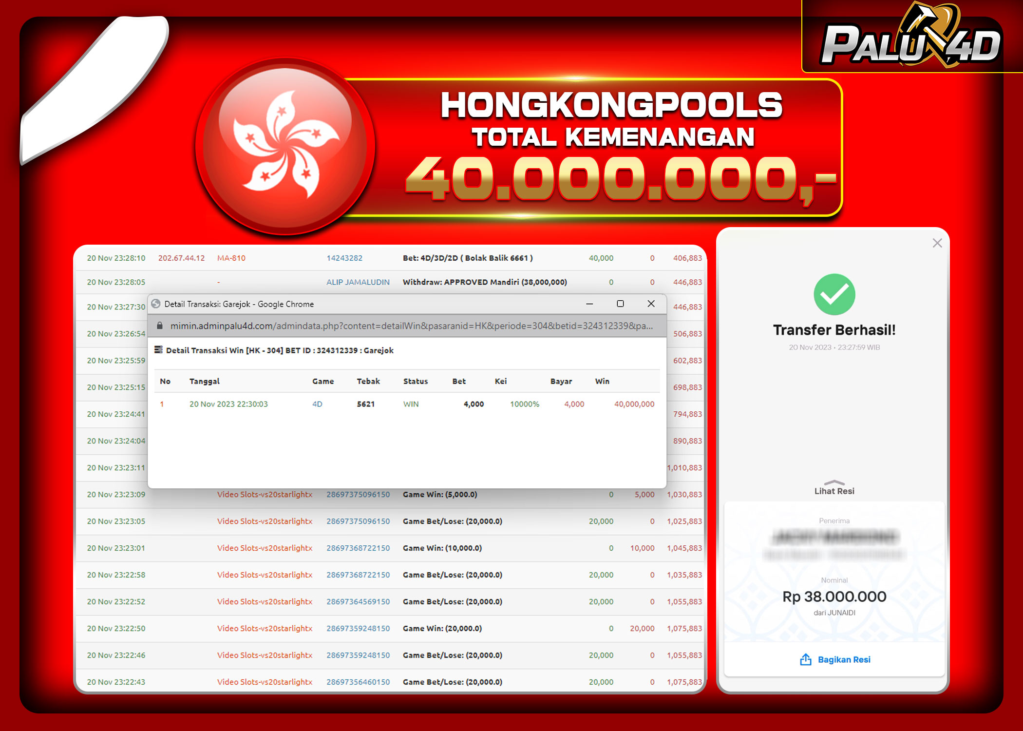 PALU4D – Menang Togel HONGKONGPOOLS Rp.40.000.000.,- LUNAS