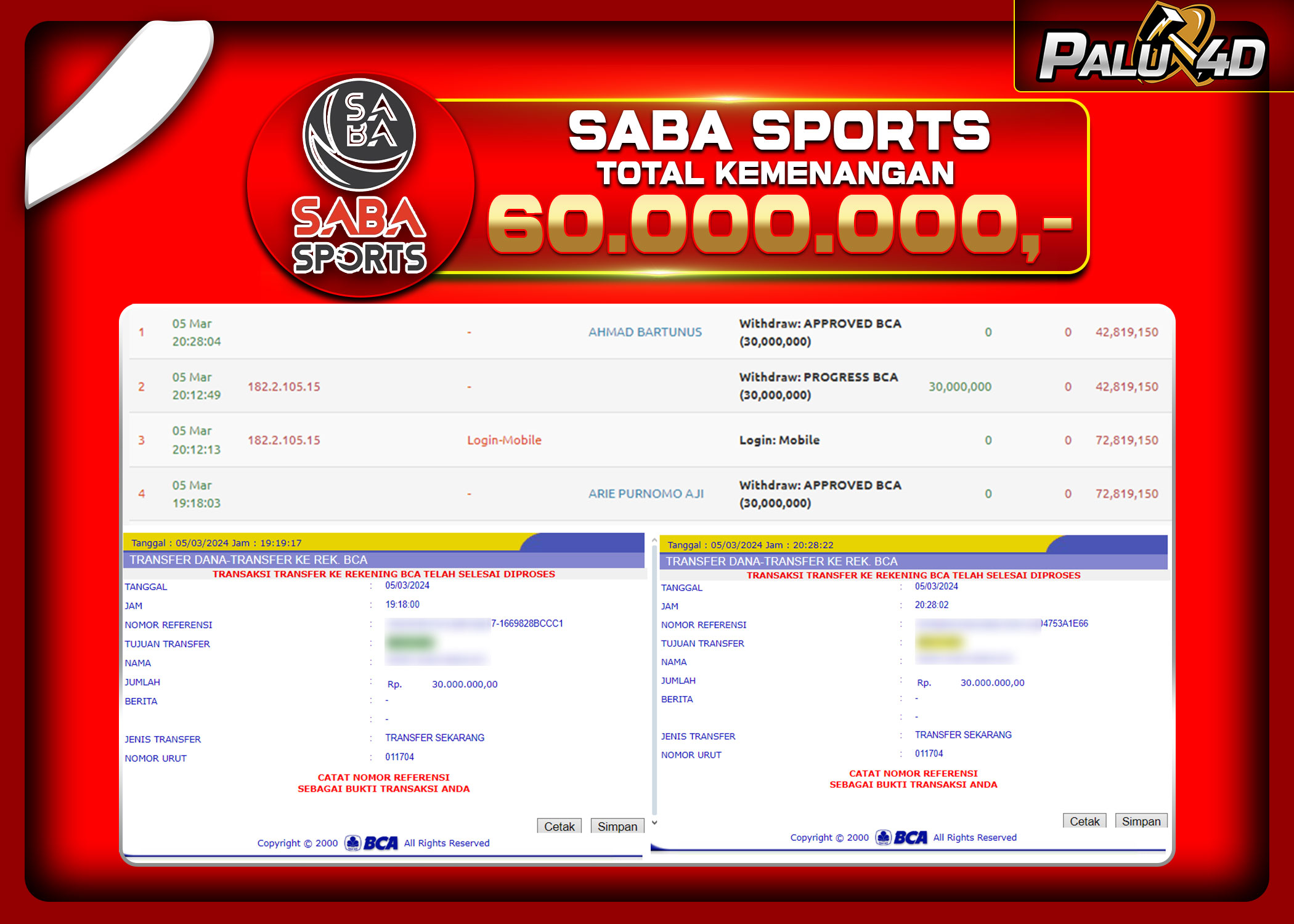 PALU4D – Menang Sportbook TARUHAN BOLA Rp.60.000.000.,- LUNAS