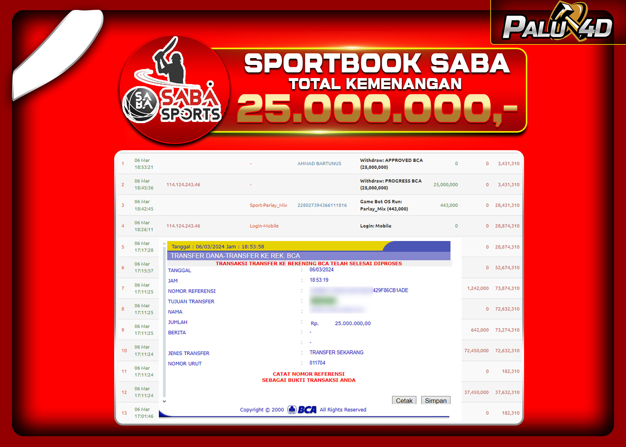 PALU4D – Menang Sportbook TARUHAN BOLA Rp.25.000.000.,- LUNAS