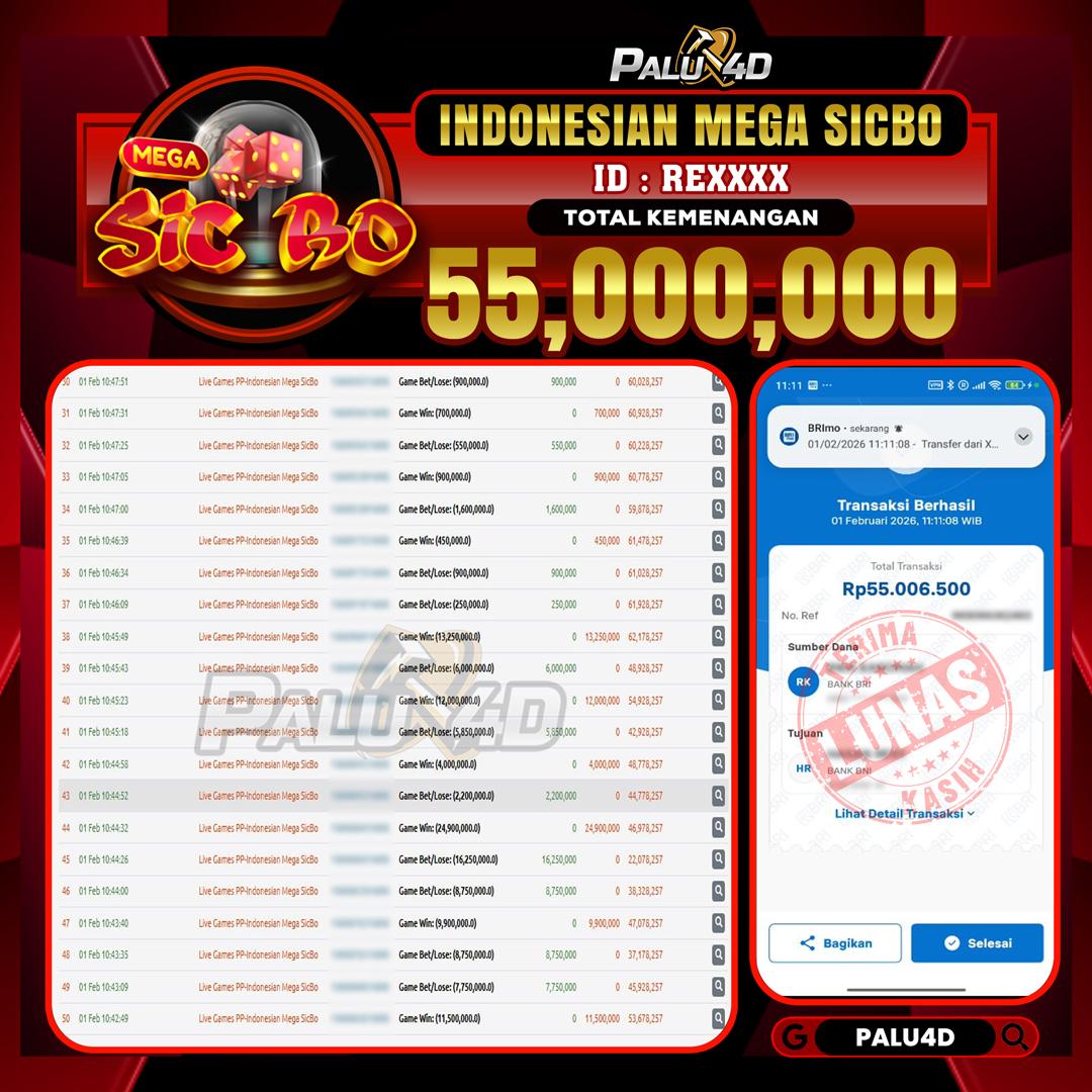 PALU4D – Menang Live Games INDONESIAN MEGA SICBO Rp.55.000.000.,- LUNAS