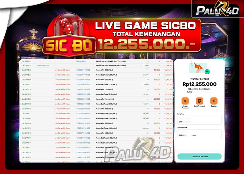 PALU4D – Menang Live Games MEGA SICBO Rp 12.255.000.,- LUNAS
