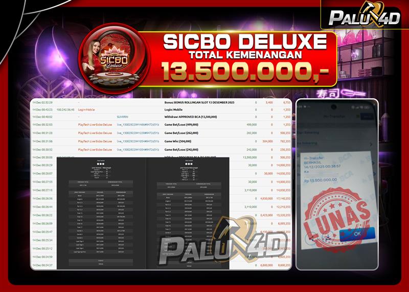 PALU4D – Selamat bagi pemenang yang mendapatkan jackpot hari ini 14 DESEMBER 2025 di game Live Games MEGA SICBO yang di sediakan situs palu4d dan sudah kami bayar lunas. Berikut data pemenang hari ini yang kami proses dengan cepat ke rekening tujuan yang terdaftar di akun selama ±10 menit.