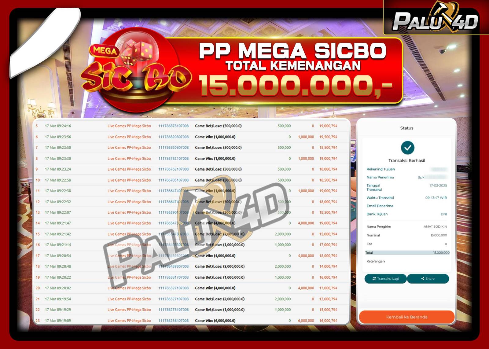 PALU4D – Menang Live Games MEGA SICBO Rp 15.000.000.,- LUNAS