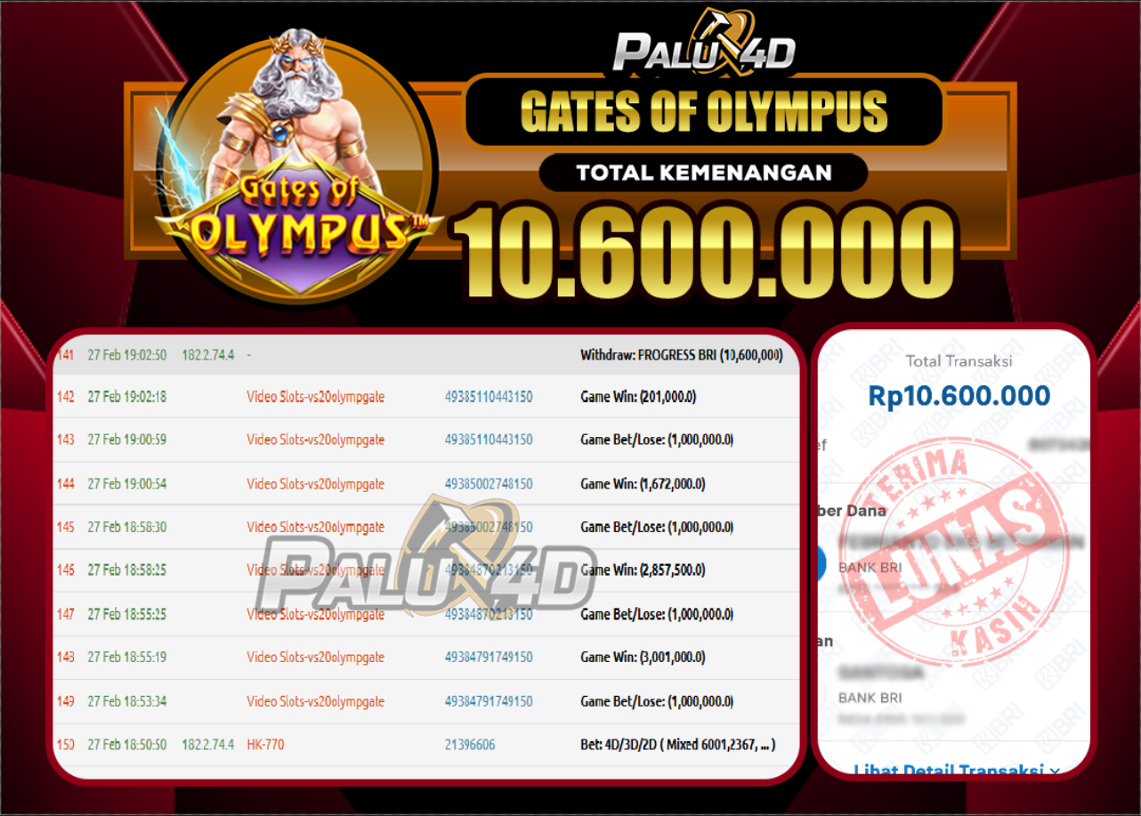 PALU4D – Menang Slot GATE OF OLYMPUS Rp.10.600.000.,- LUNAS