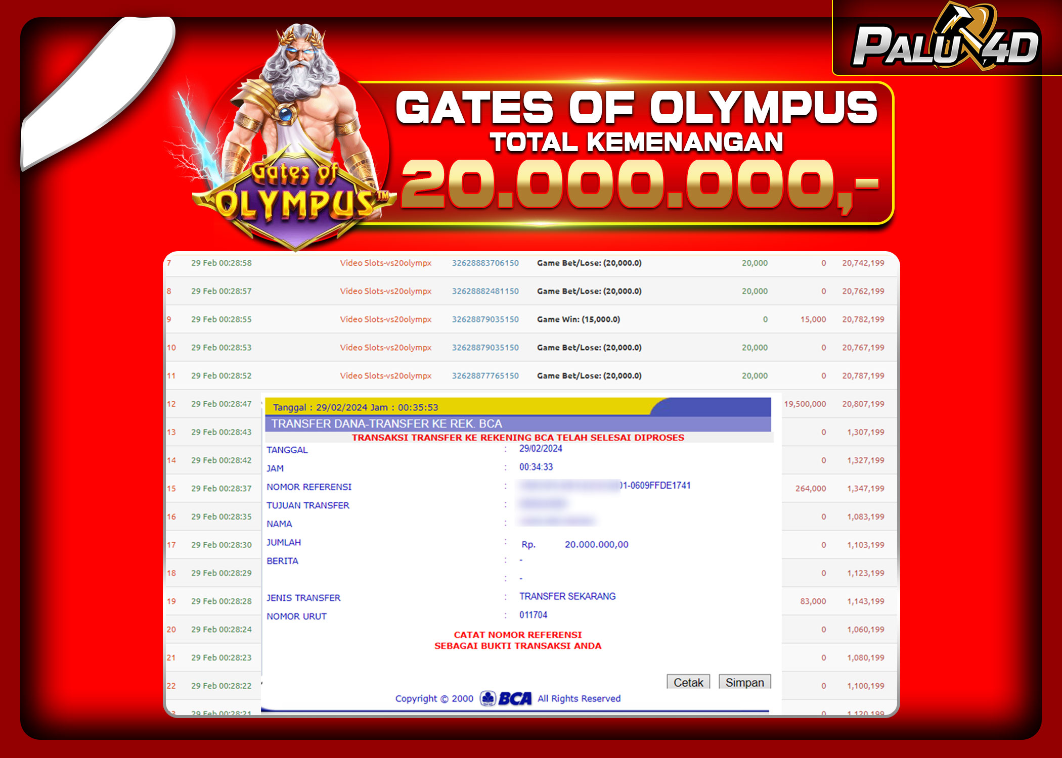 PALU4D – Selamat bagi pemenang yang mendapatkan jackpot hari ini 29 februari 2024 di game Slot GATES OF OLYMPUS yang di sediakan situs palu4d dan sudah kami bayar lunas. Berikut data pemenang hari ini yang kami proses dengan cepat ke rekening tujuan yang terdaftar di akun selama ±10 menit.