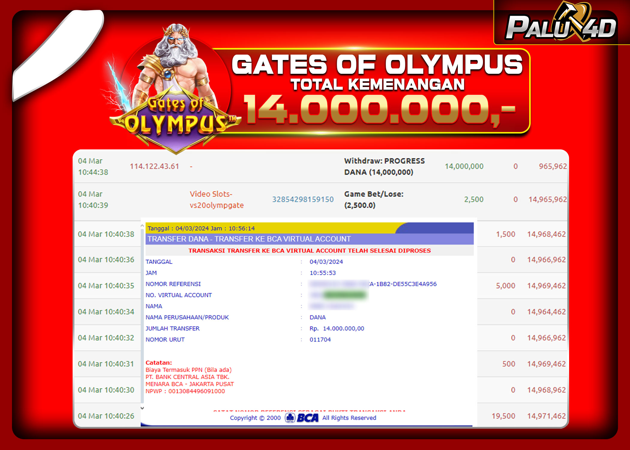 PALU4D – Menang Slot GATE OF OLYMPUS Rp.14.000.000.,- LUNAS