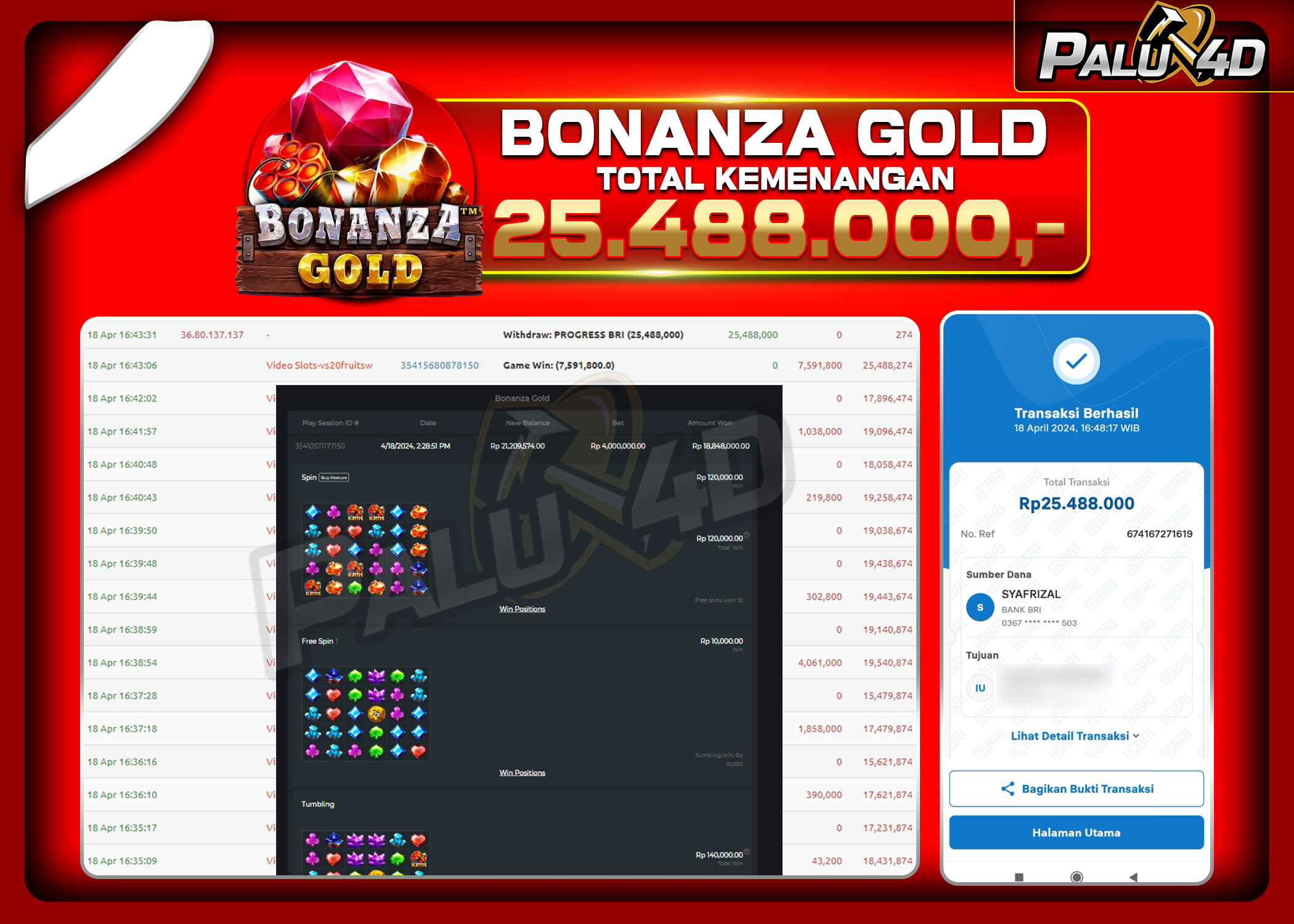 PALU4D – Menang Slot BONANZA GOLD  Rp.25.488.000.,- LUNAS