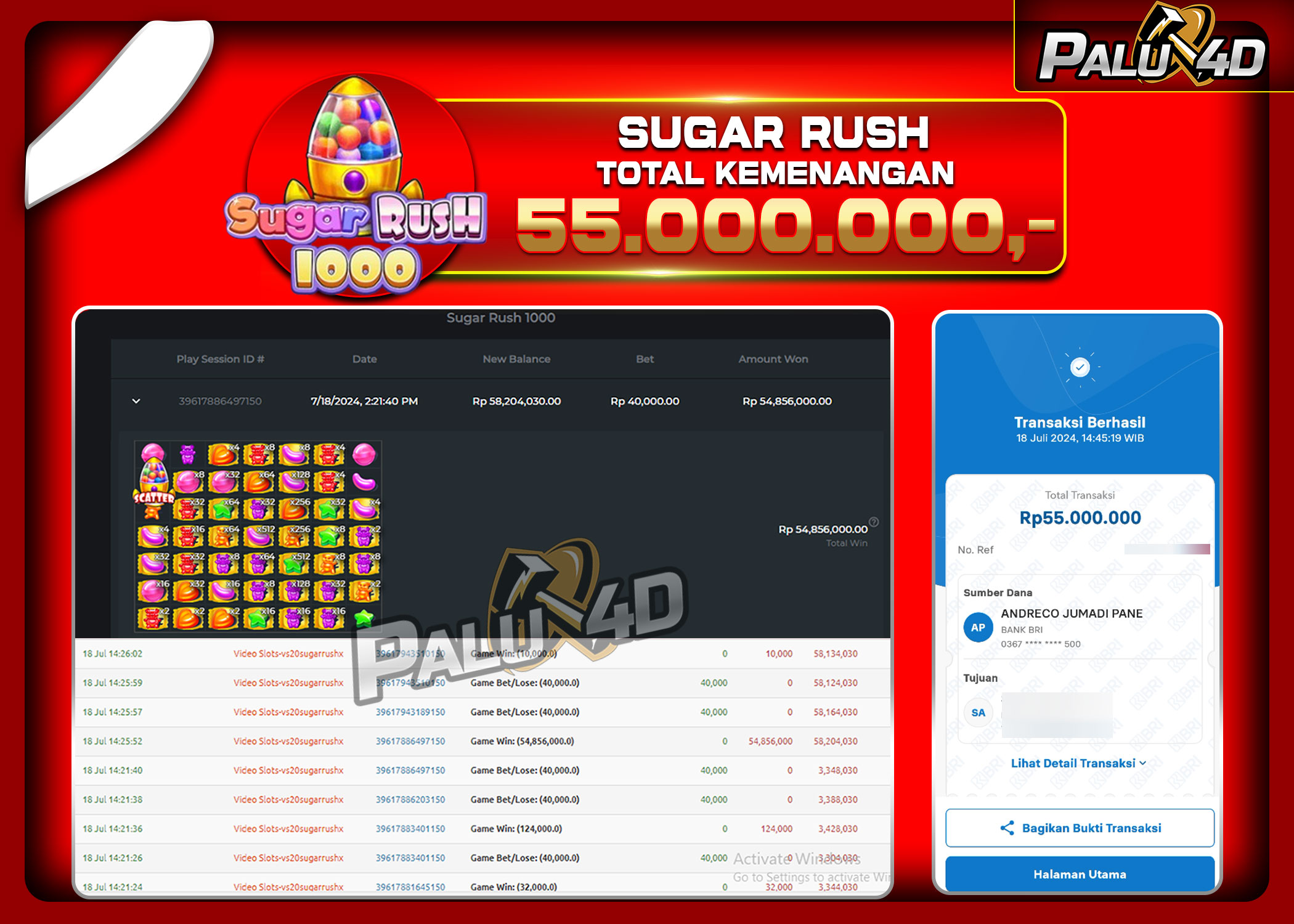PALU4D – Menang Slot SUGAR RUSH Rp.55.000.000.,- LUNAS