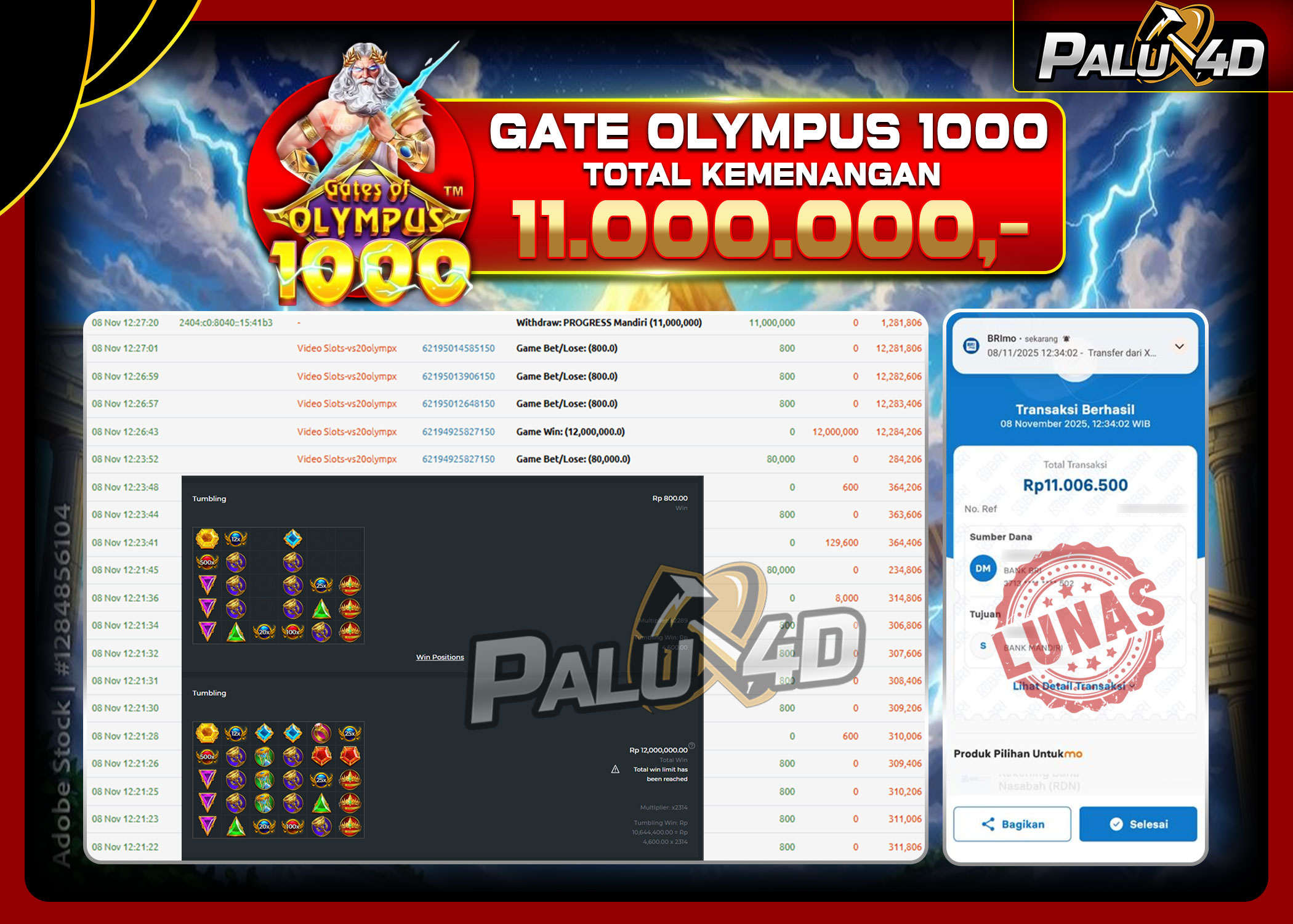 PALU4D – Menang Slot GATES OF OLYMPUS 1000 Rp11.000.000.,- LUNAS