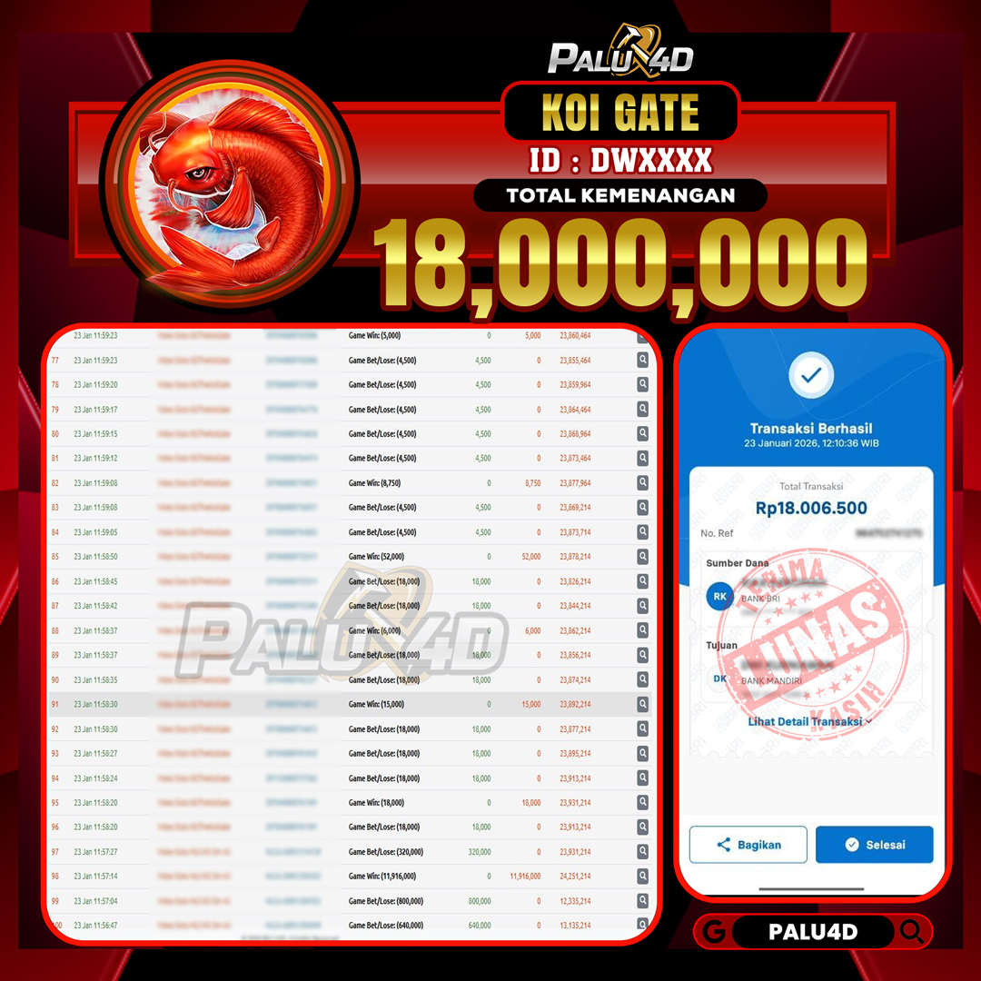PALU4D – Menang Slot KOI GATE Rp18.000.000.,- LUNAS