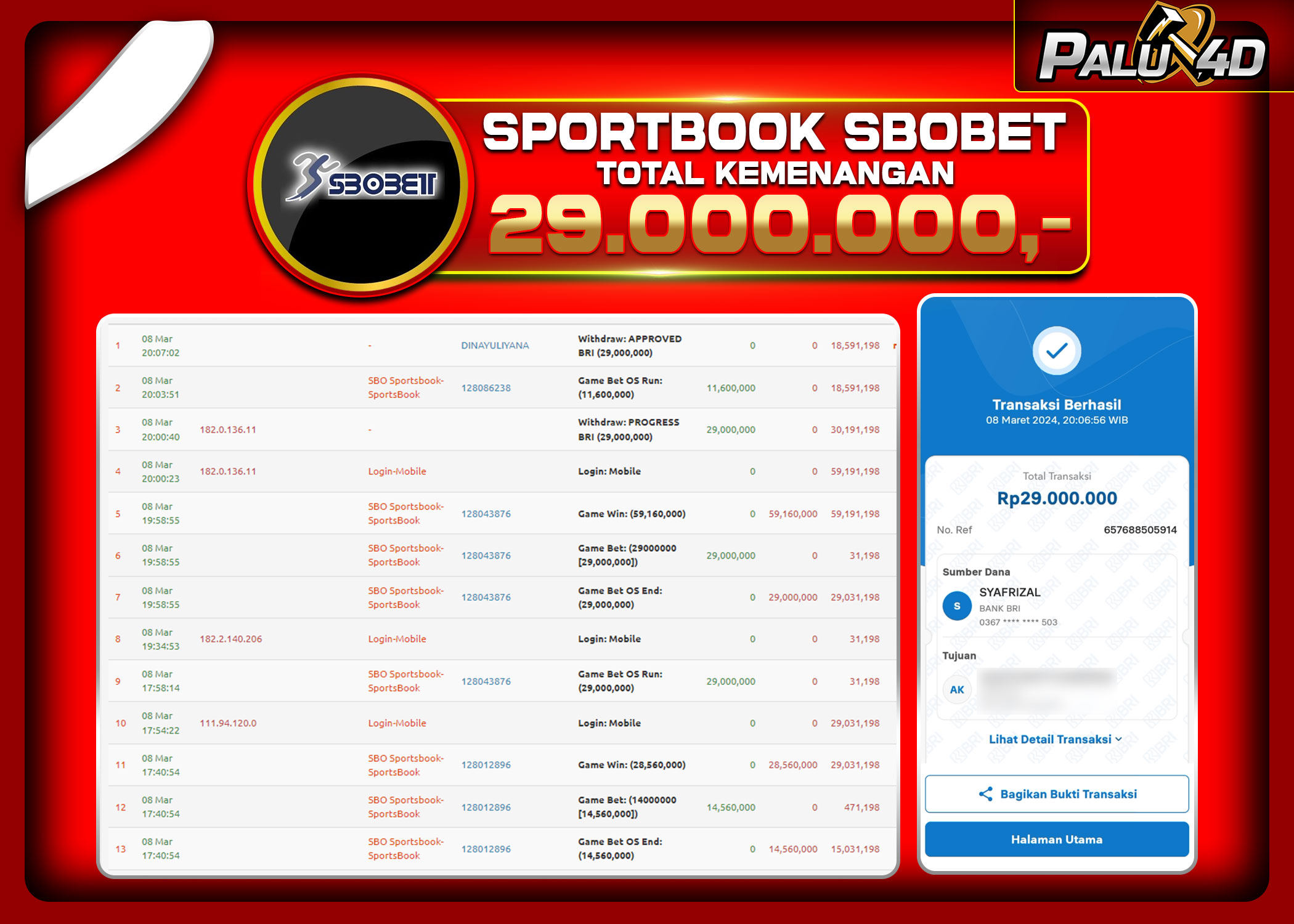 PALU4D – Menang Sportbook TARUHAN BOLA Rp.29.000.000.,- LUNAS