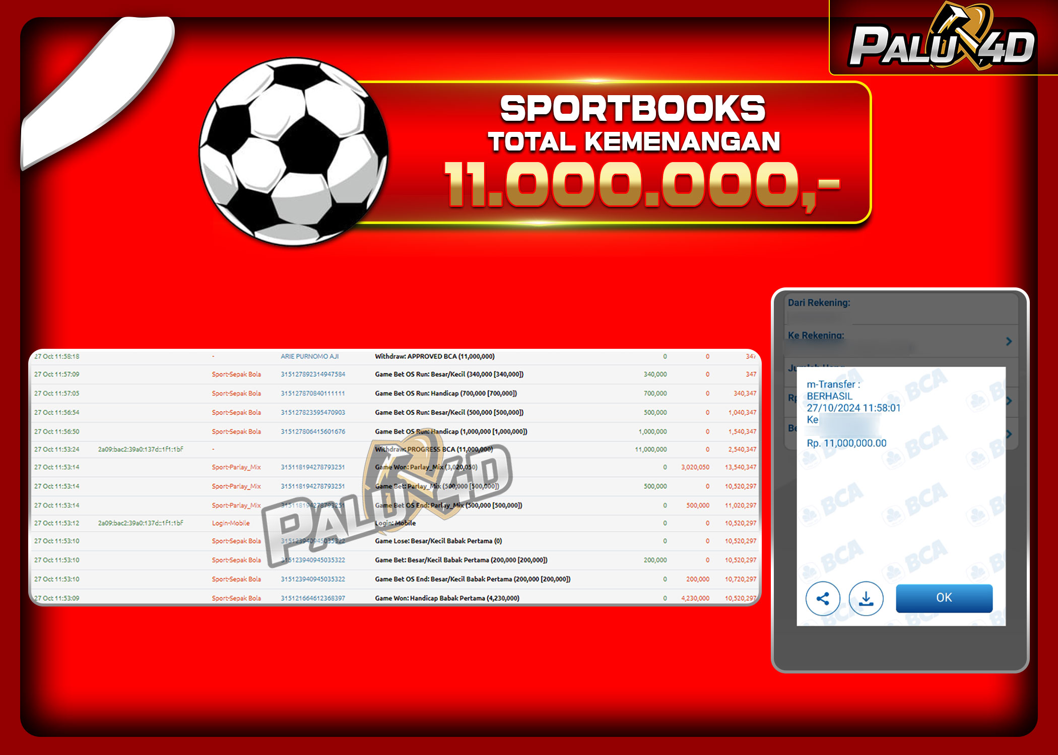PALU4D – Menang SPORTBOOKS TARUHAN BOLA Rp.11.000.000.,- LUNAS
