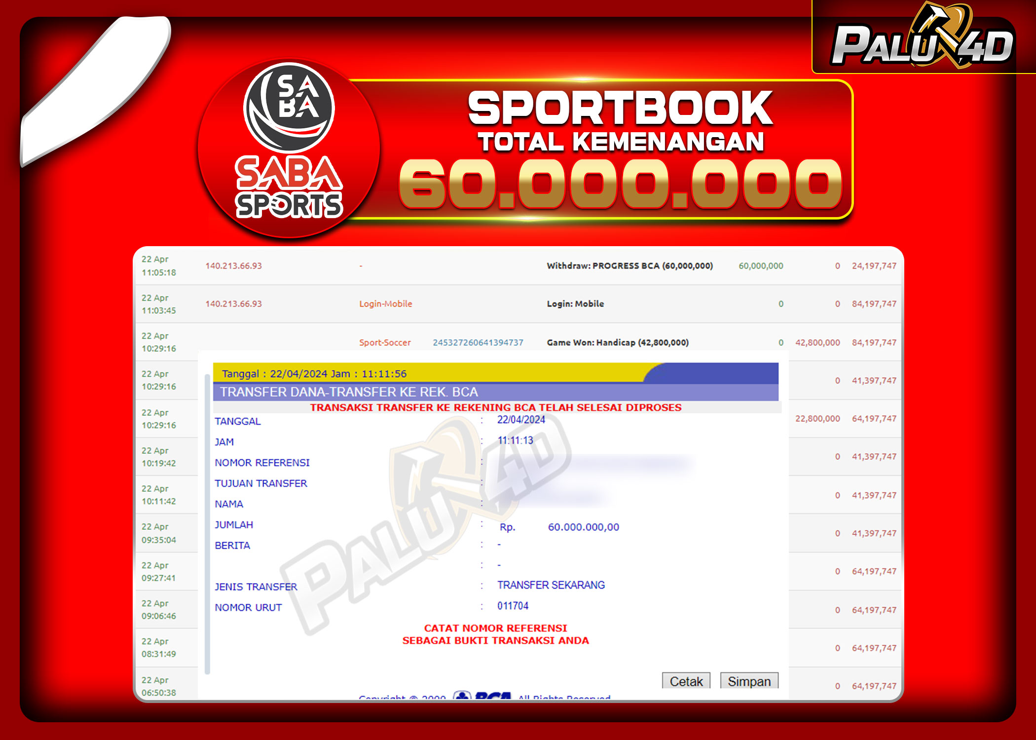 PALU4D – Menang SPORTBOOKS TARUHAN BOLA Rp.60.000.000.,- LUNAS