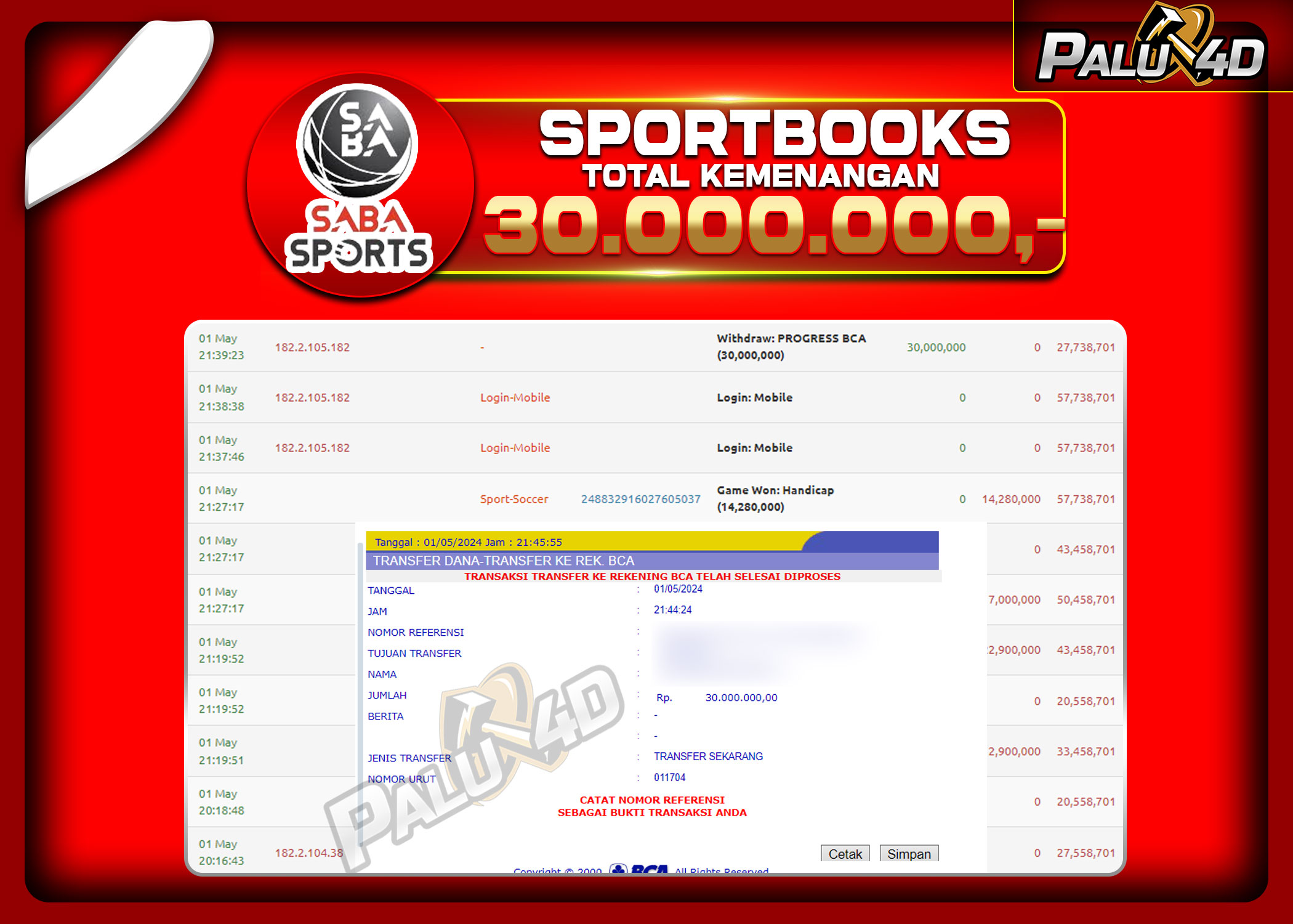 PALU4D – Menang SPORTBOOKS TARUHAN BOLA Rp.30.000.000.,- LUNAS