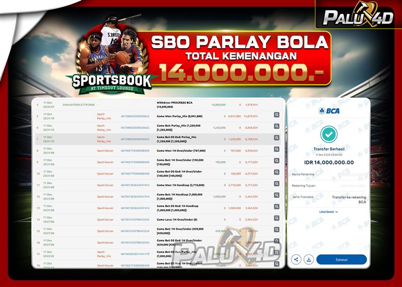 PALU4D – Menang SPORTBOOKS TARUHAN BOLA Rp.14.000.000.,- LUNAS