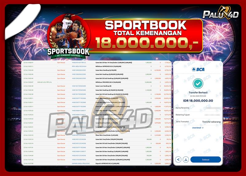 PALU4D – Menang SPORTBOOKS TARUHAN BOLA Rp.18.000.000.,- LUNAS