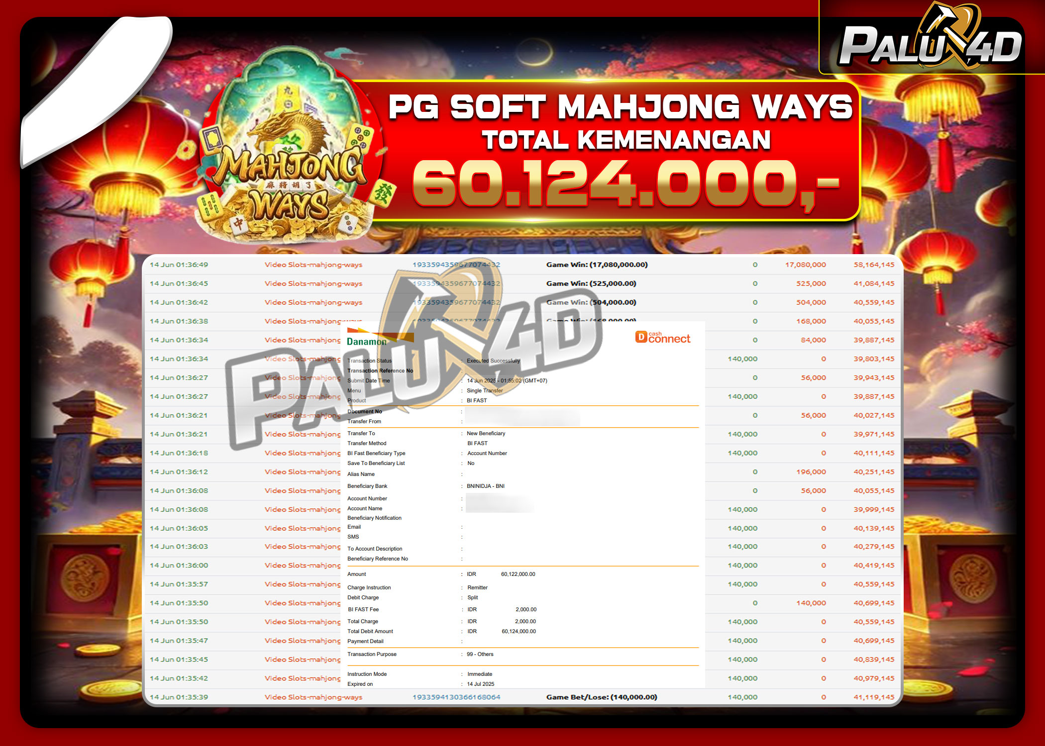 14/06/2025SLOT PALU4D – Menang Slot MAHJONG WAYS Rp.60.124.000.,- LUNAS PALU4D – Menang Slot MAHJONG WAYS Rp.60.124.000.,- LUNAS PALU4D – Selamat bagi pemenang yang mendapatkan jackpot hari ini 14 Juni 2025 di […]