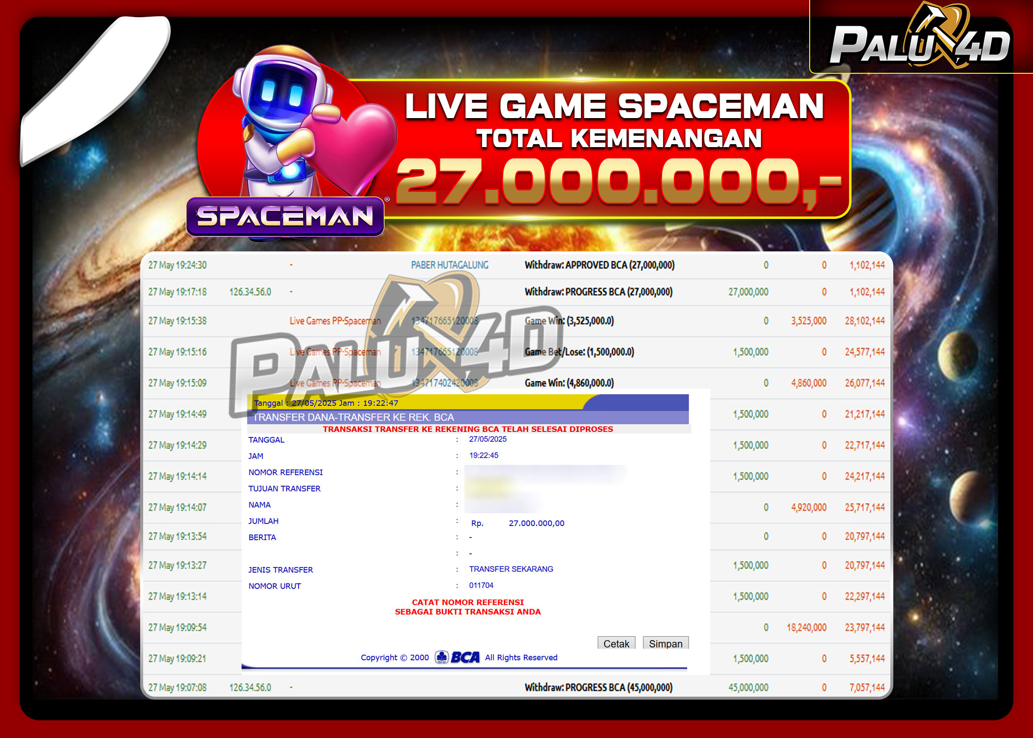 03/06/2025LIVE CASINO PALU4D – Menang Live Games SPACEMAN Rp 27.000.000.,- LUNAS PALU4D – Menang Live Games SPACEMAN Rp 27.000.000.,- LUNAS PALU4D – Selamat bagi pemenang yang mendapatkan jackpot hari ini 28 MAY 2025 […]