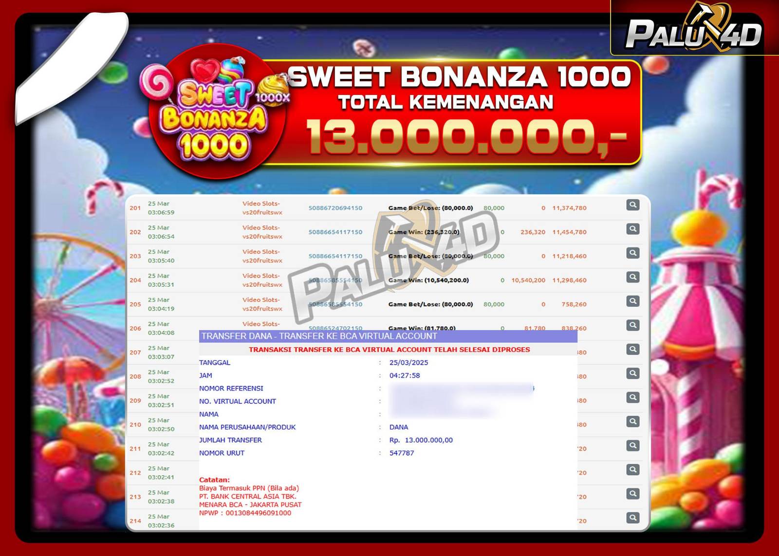 31/03/202526/04/2025SLOT PALU4D – Menang Slot SWEET BONANZA 1000 Rp.13.000.000.,- LUNAS PALU4D – Menang Slot SWEET BONANZA 1000 Rp.13.000.000.,- LUNAS PALU4D – Selamat bagi pemenang yang mendapatkan jackpot hari ini 25 Maret 2025 […]