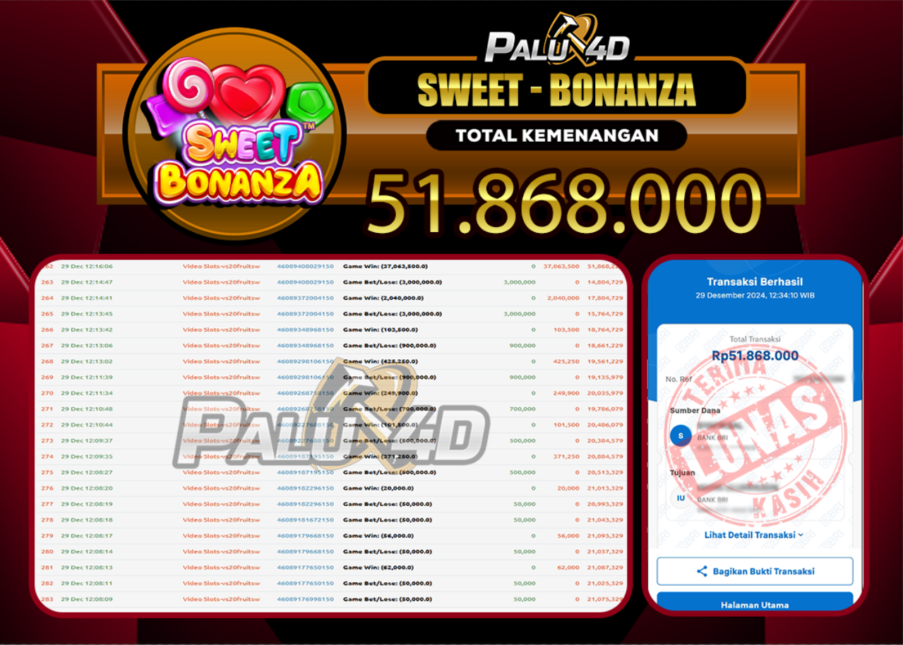 29/12/202401/02/2025SLOT PALU4D – Menang Slot SWEET BONANZA Rp.51.868.000.,- LUNAS PALU4D – Menang Slot SWEET BONANZA Rp.51.868.000.,- LUNAS PALU4D – Selamat bagi pemenang yang mendapatkan jackpot hari ini 29 Desember 2024 di […]